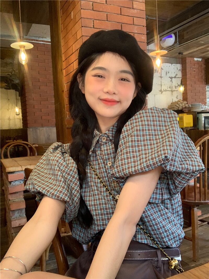 スタンダードカラー格子柄シャツ サマーカーディガントップス レトロ 夏物 s576175524293613
