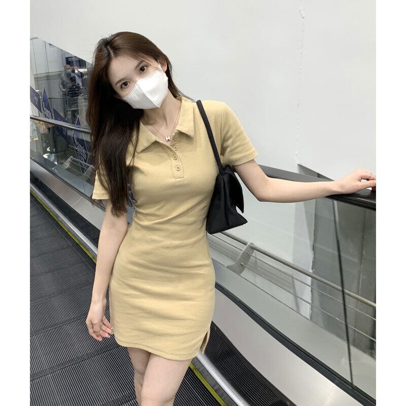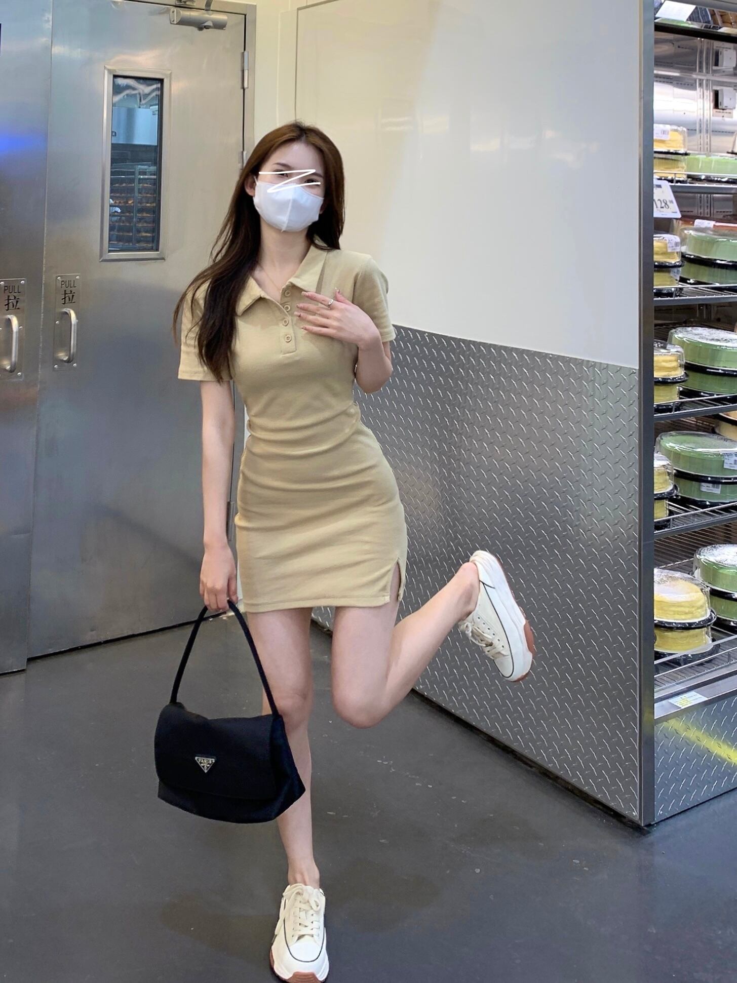 スタンダードカラードレス サマースリムショートスカート レトロ 夏物 s576141343939473