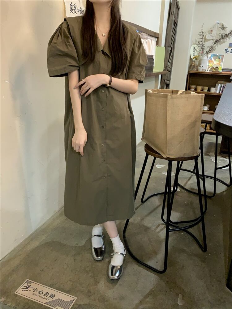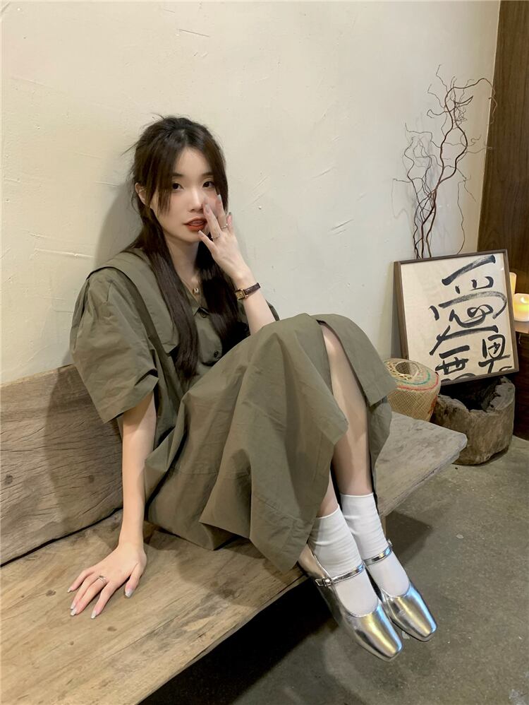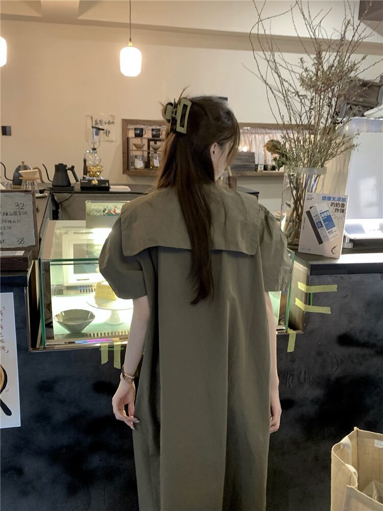 グリーンシャツ ドレス サマースタンダードルーズスカート レトロ 夏物 s576176569080318