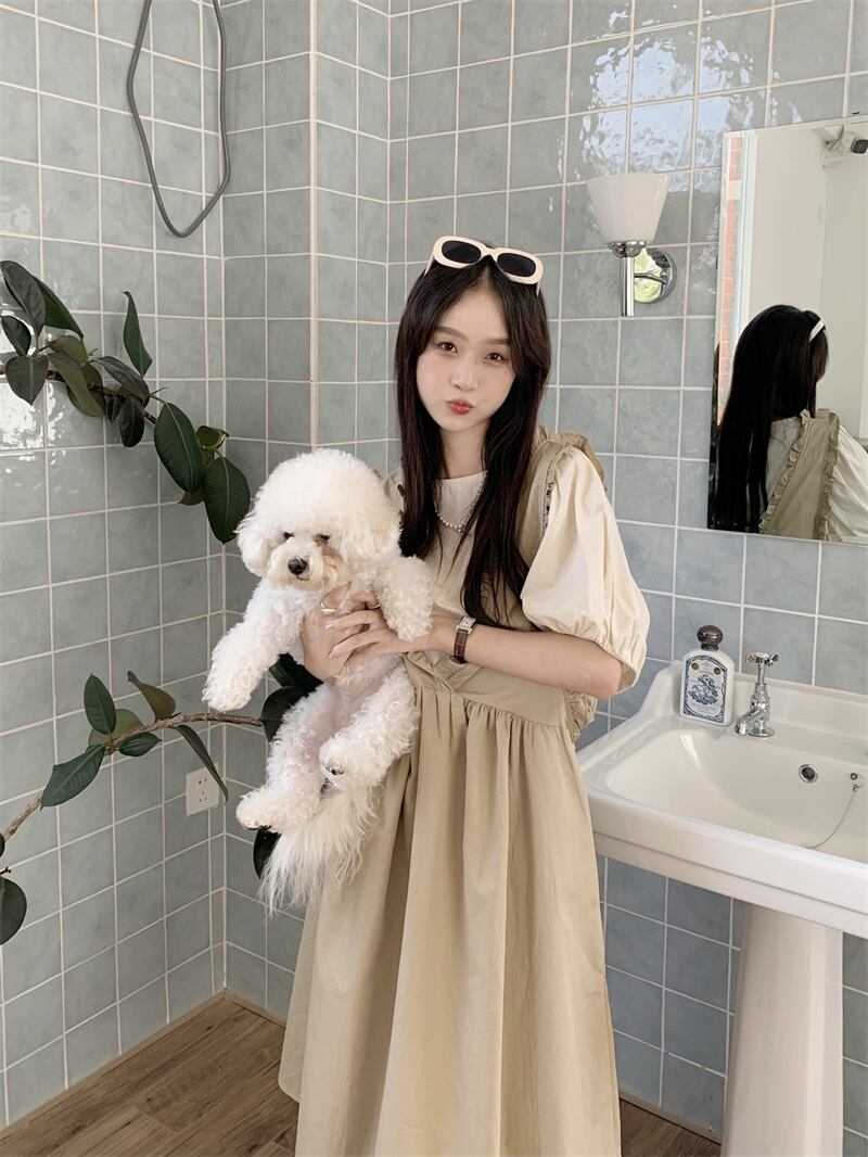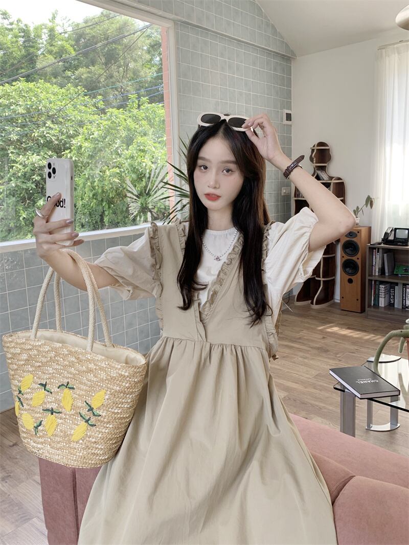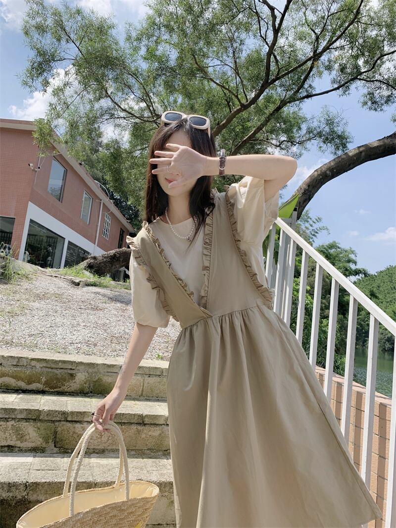 Vネックドレス サマーロングスカート 大人ガーリー スウィート キュート カジュアル 夏物 ピュア s576197204151783