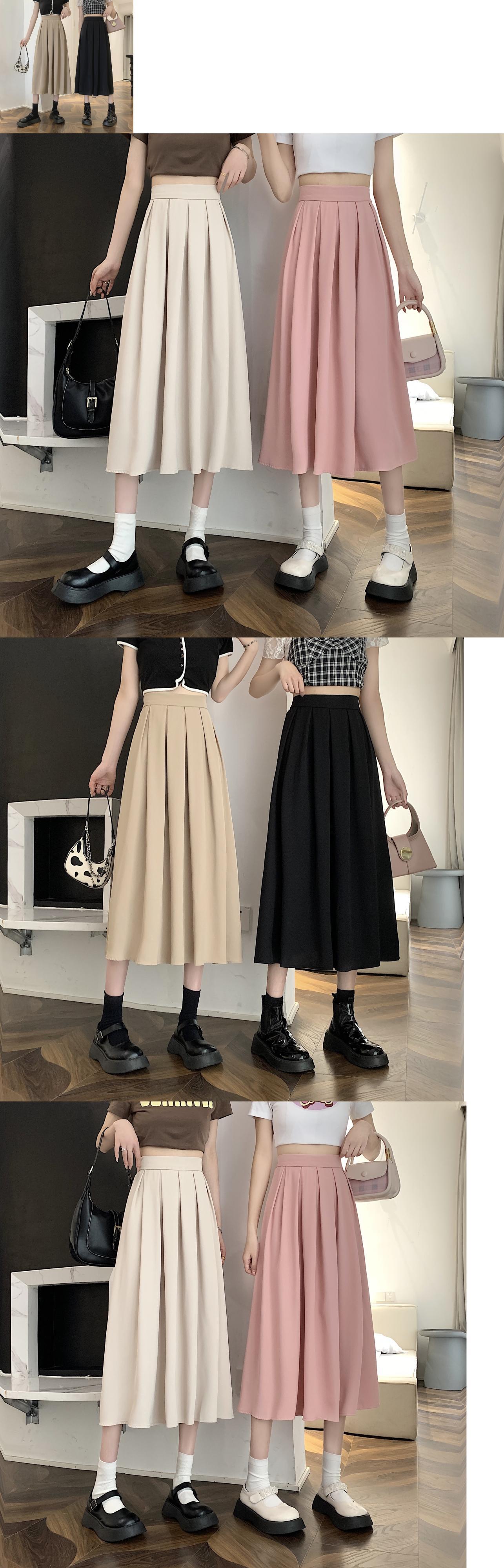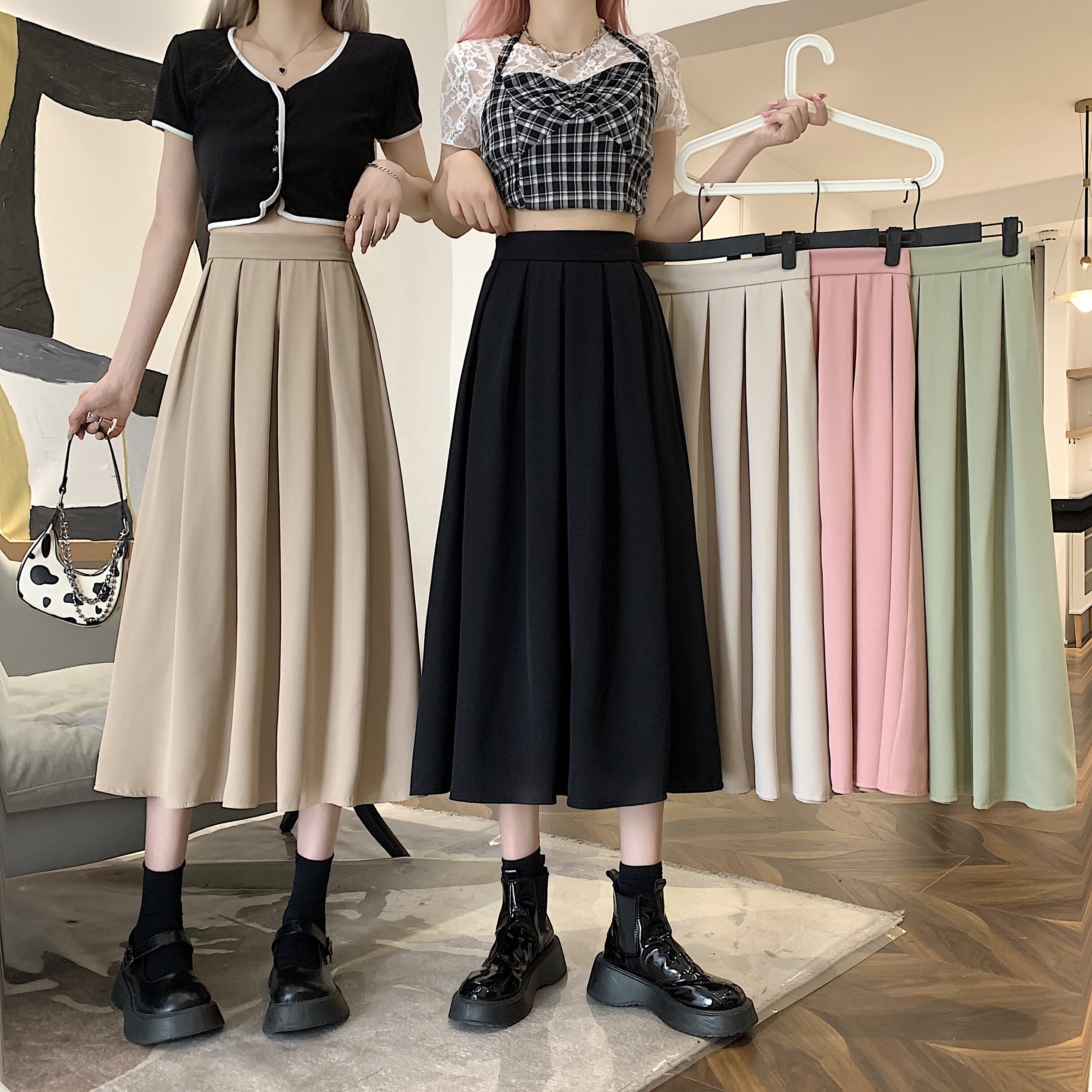 ブラックプリーツスカート サマーハイウェストウェストAラインロング 夏物 s576124691855535