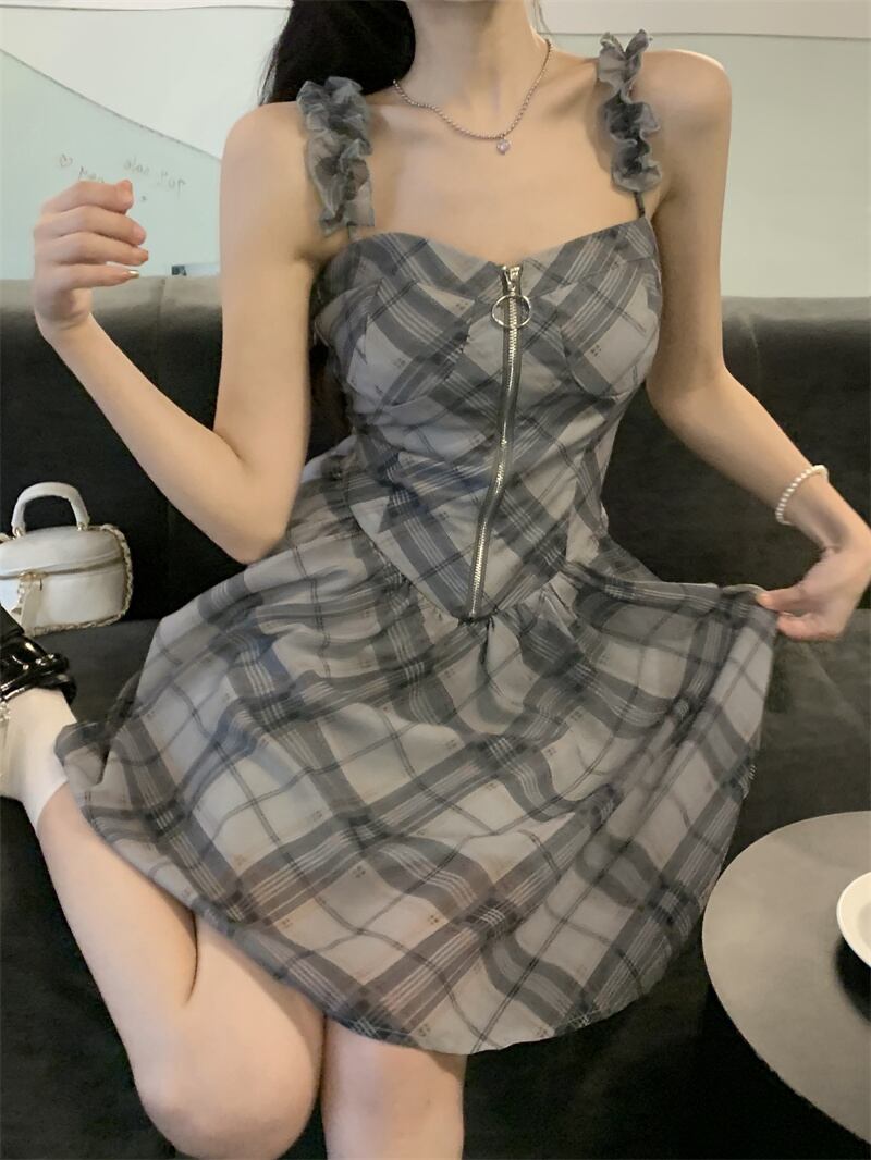 格子柄ドレス サマーウェストスカート 大人ガーリー スウィート キュート カジュアル 夏物 ピュア s576187795387845