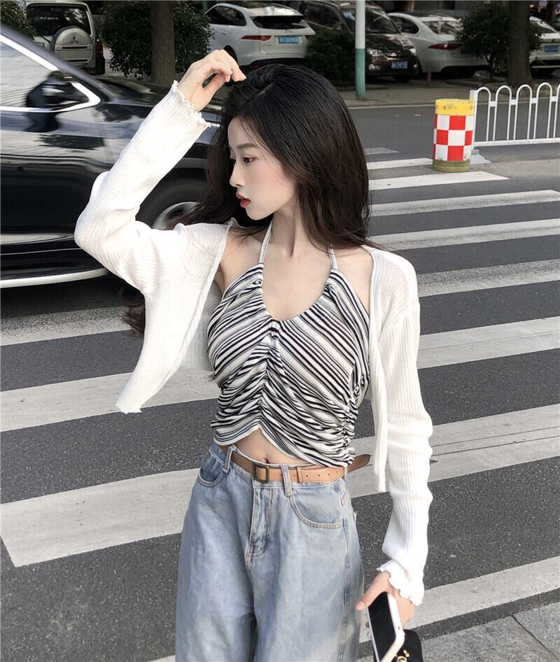ホルターサマーバックノースリーブショートトップス 夏物 s57613211409309
