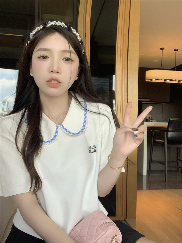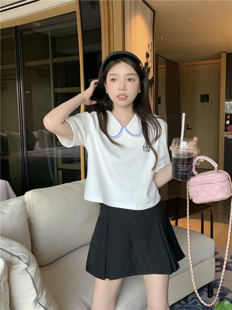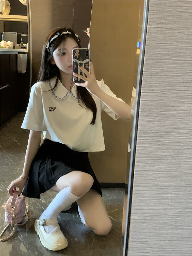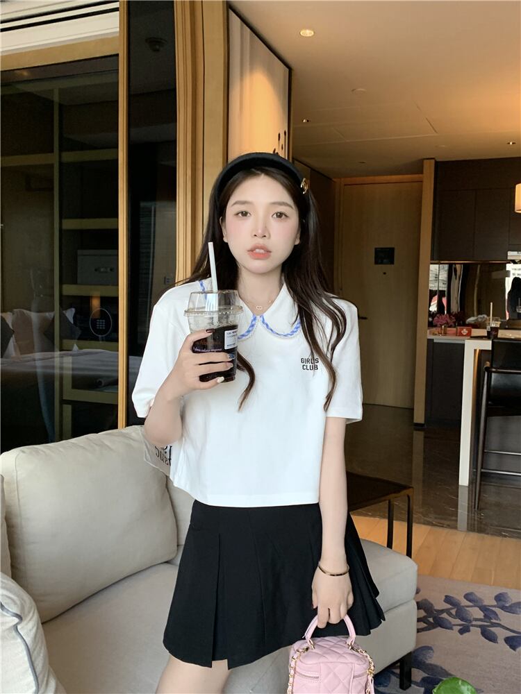 カラーホワイトショートTシャツ サマースタイルトップス 大人ガーリー スウィート キュート カジュアル 夏物 s576111599066464