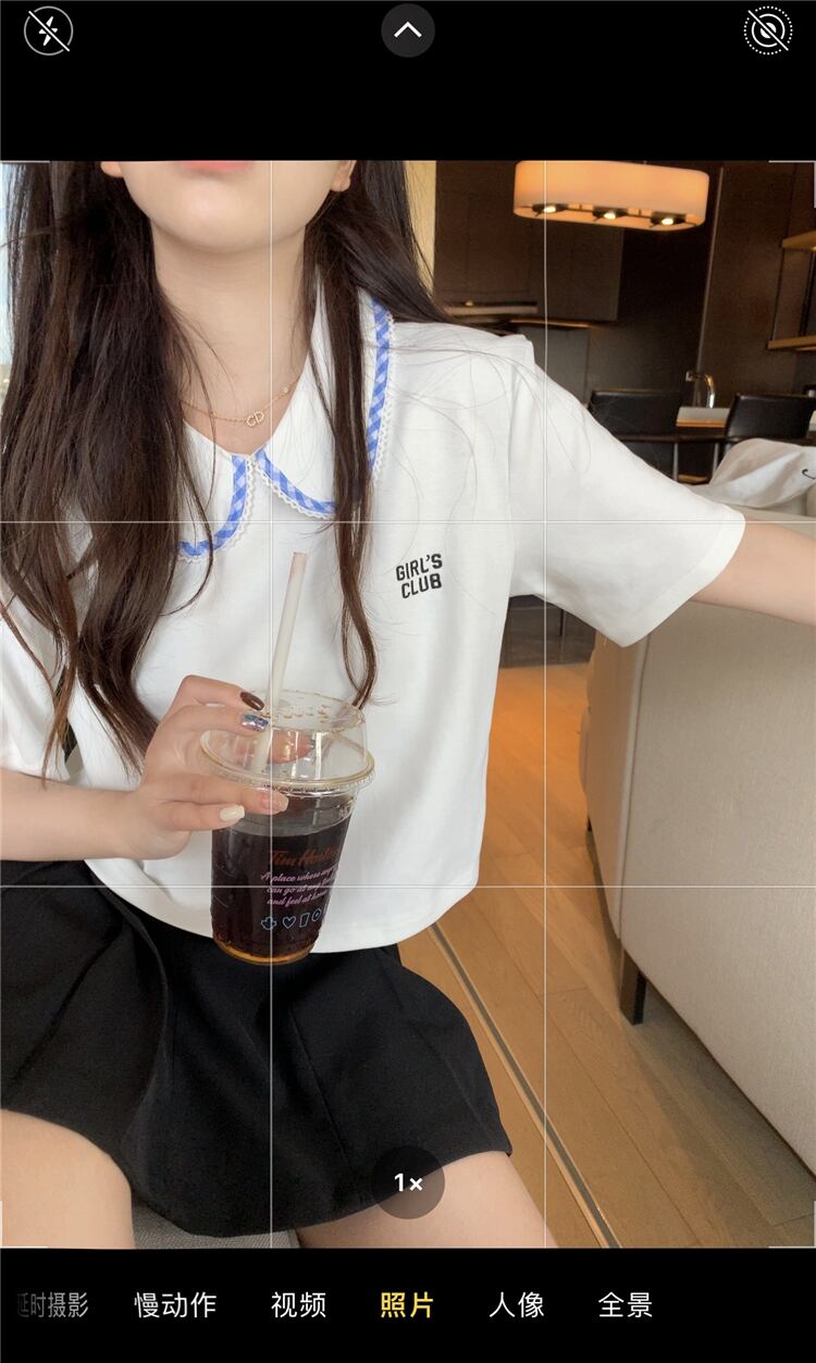 色:ホワイトt-shirt,ブラックスカート