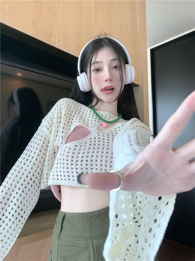 ニットセーター サマー薄手ブラウス トップス ロング 夏物 s576166497439835