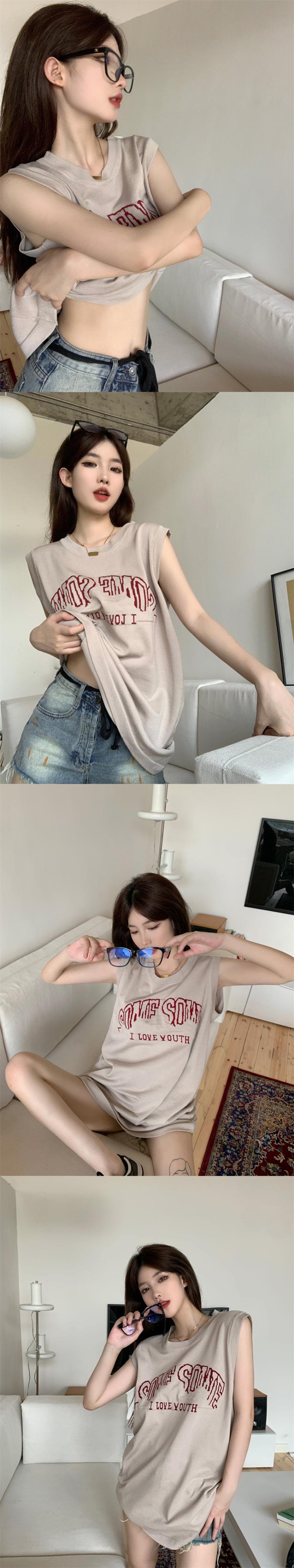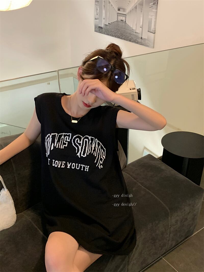 ブラックノースリーブTシャツ サマールーズトップス 夏物 s576150184591309