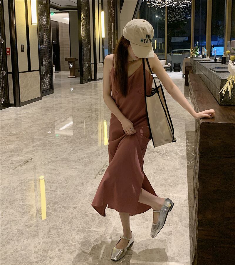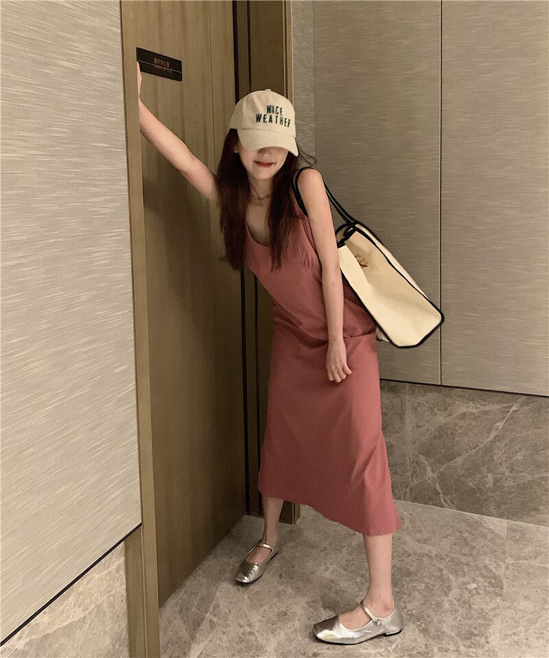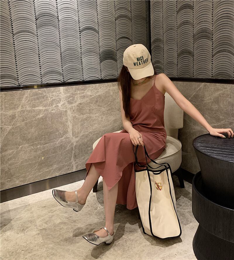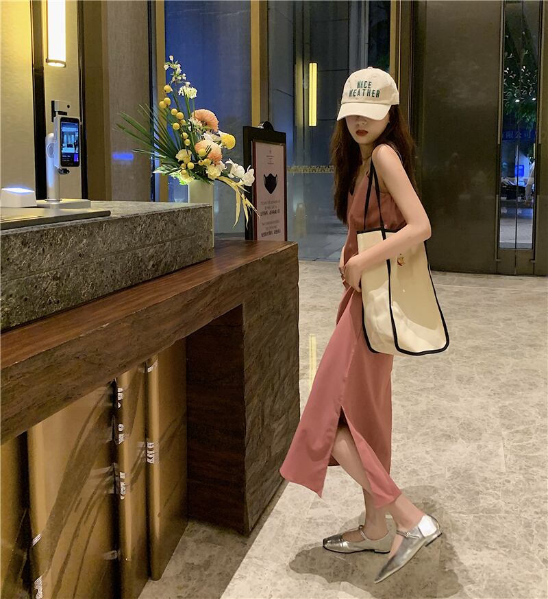 ベーシックVネックドレス サマースタイルスリットロングスカート 夏物 s576121789733397