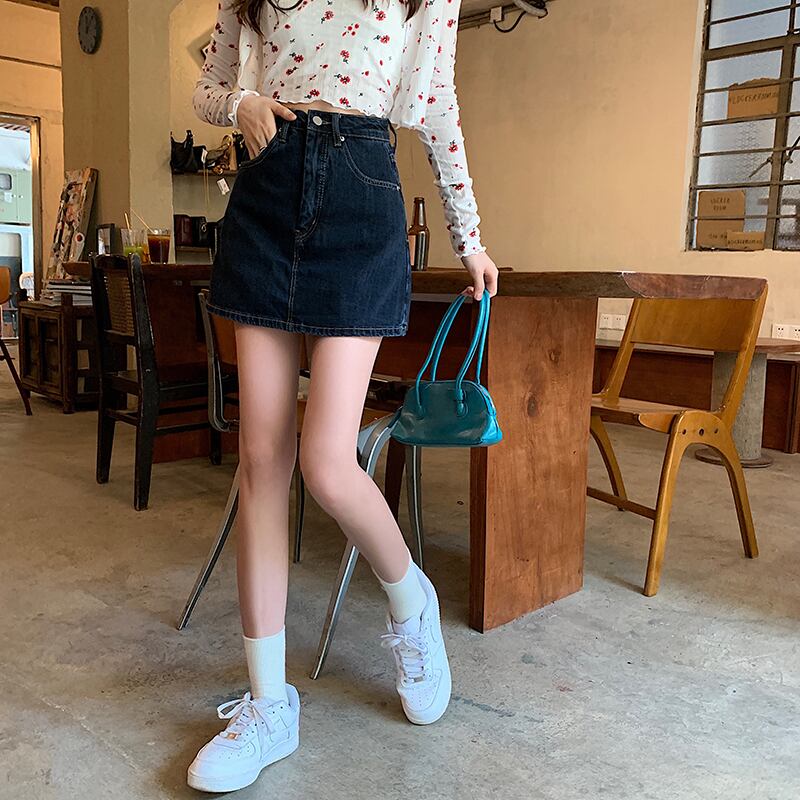 ダークブルースカート サマーハイウェストスリム 夏物 s576127977608256