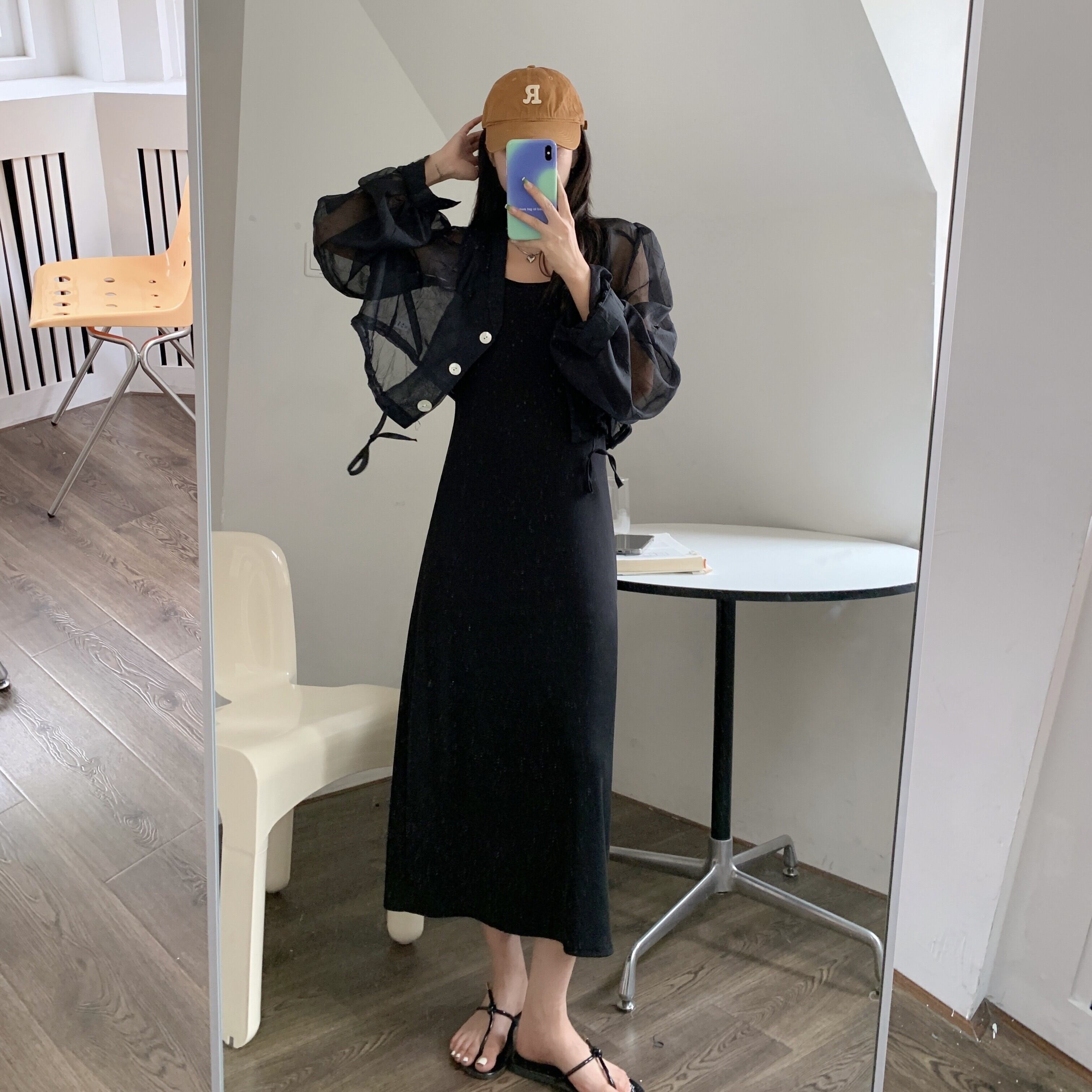 サマー薄手ブラックシャツ ジャケット トップス ロング 夏物 s576193954478467