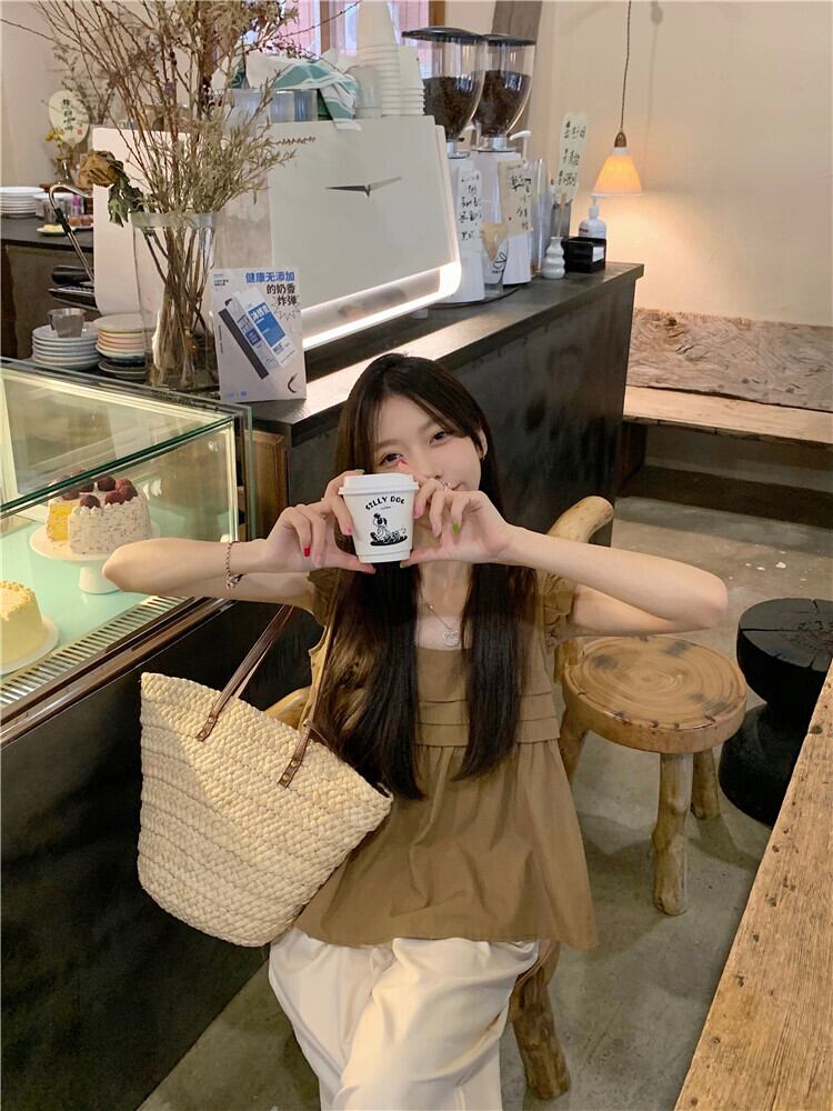 トップス サマースリーブシャツ 大人ガーリー スウィート キュート カジュアル 夏物 スクウェア s576144925536393