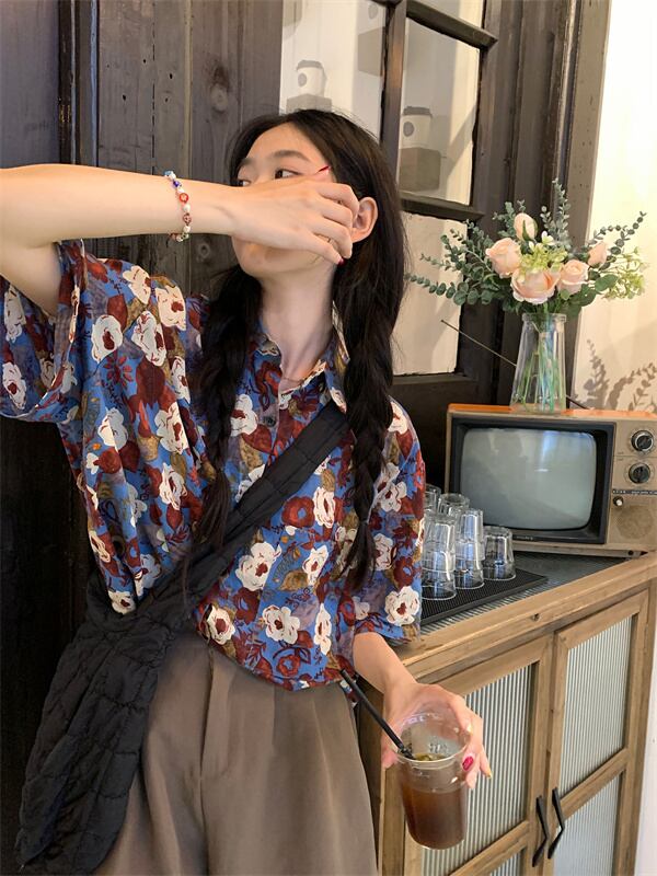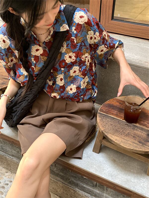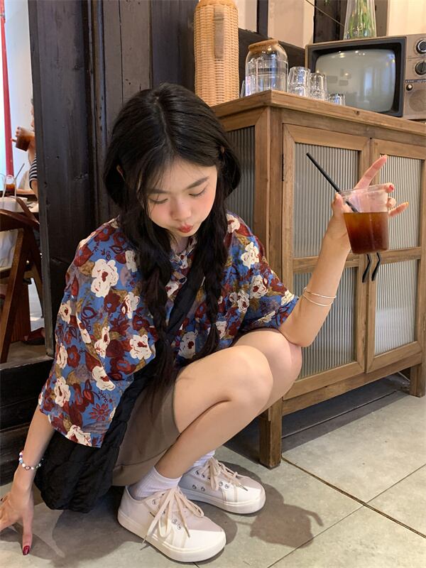 フローラルシャツ サマースタイルルーズトップス 夏物 花柄 s576121783761240