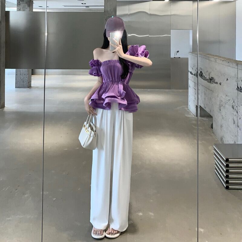 色:パープルトップ,ホワイトtrousers
