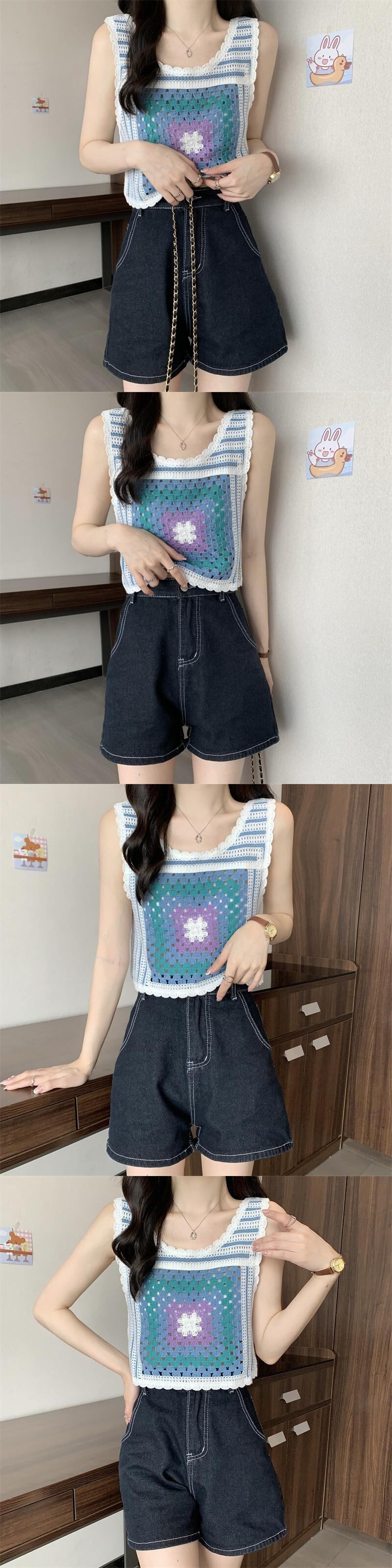 ニットサマーショートトップス 夏物 ステッチ s576197609615597