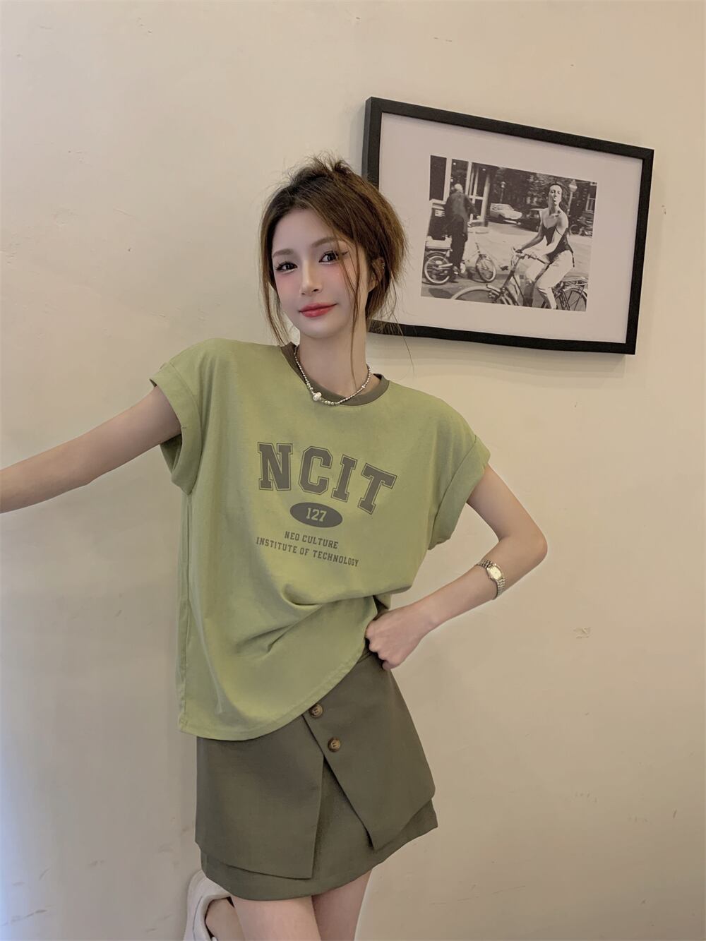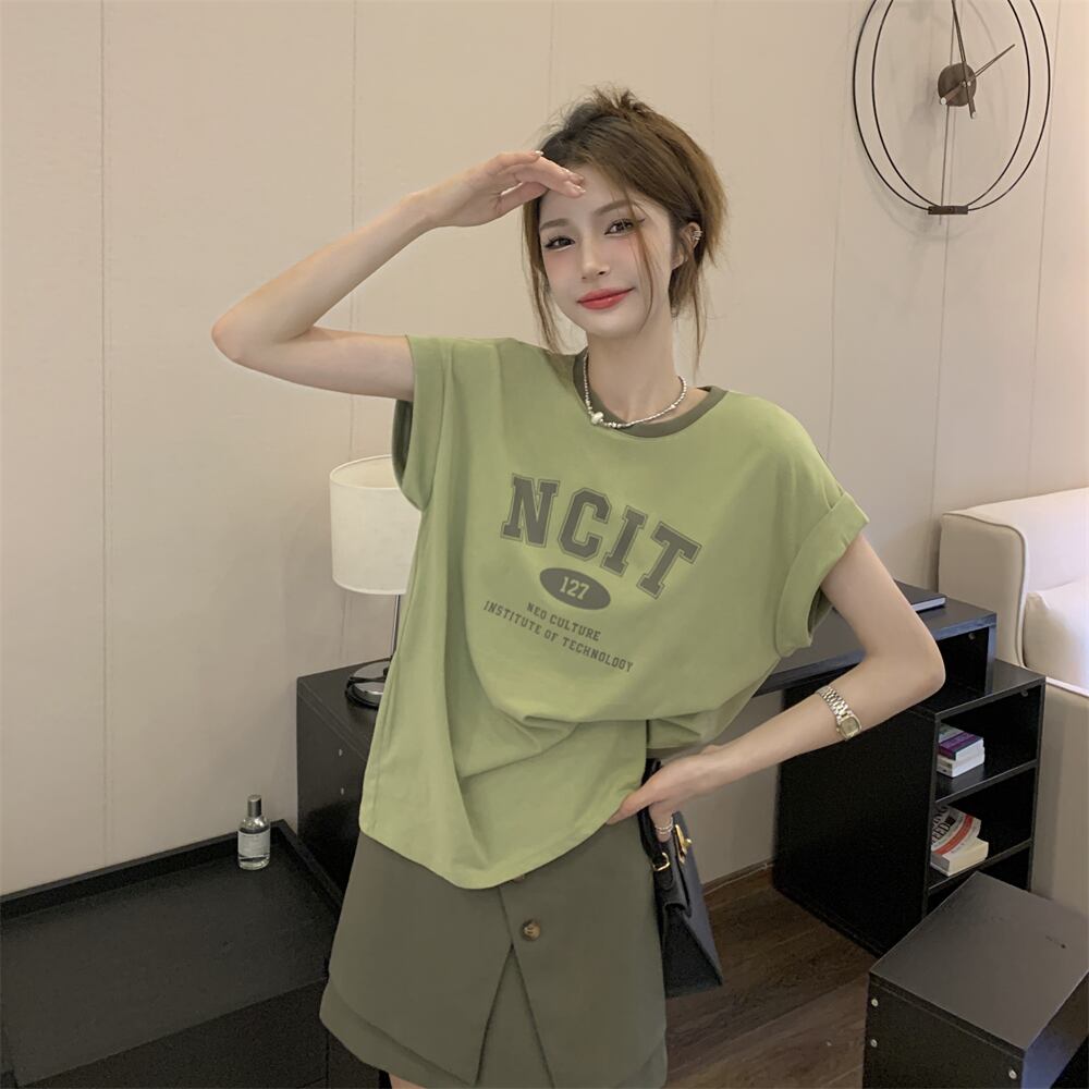 グリーンTシャツ サマープリントルーズトップス 夏物 s57618081571804