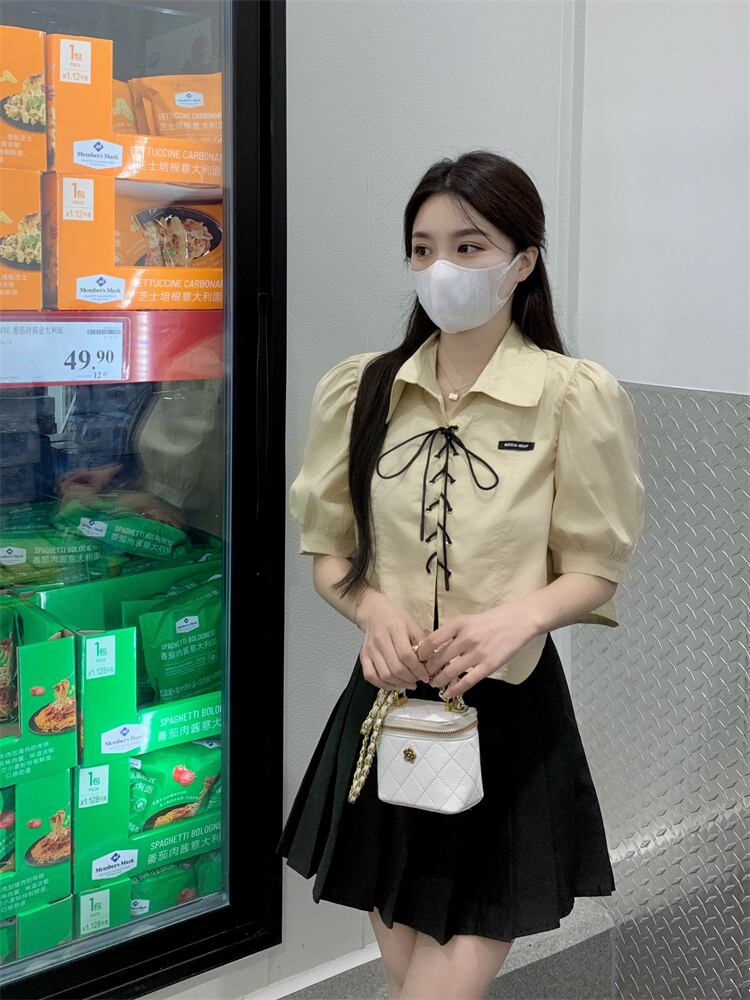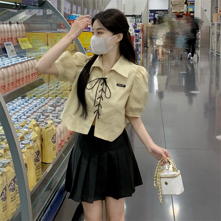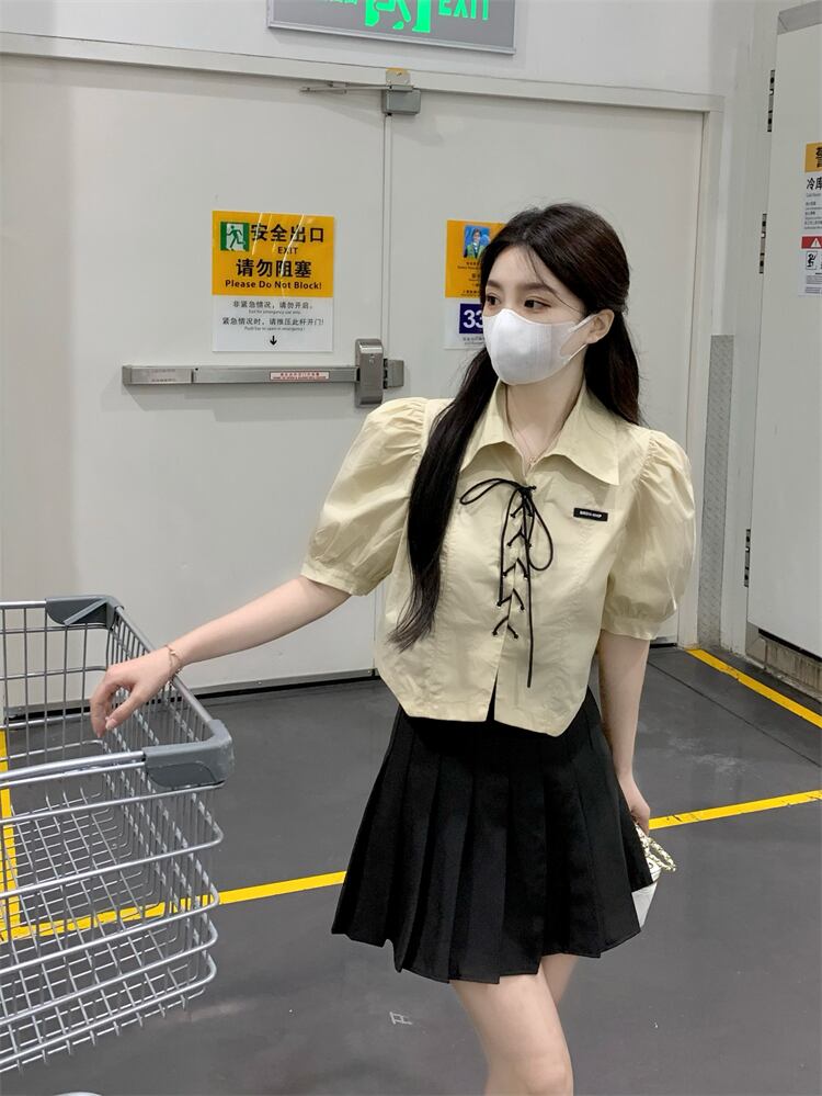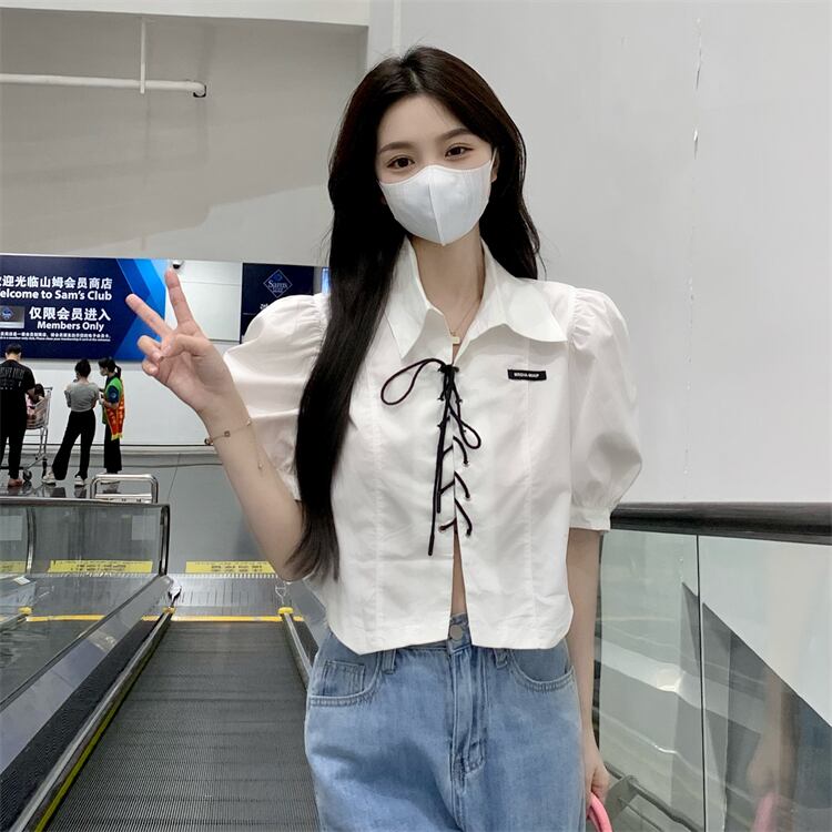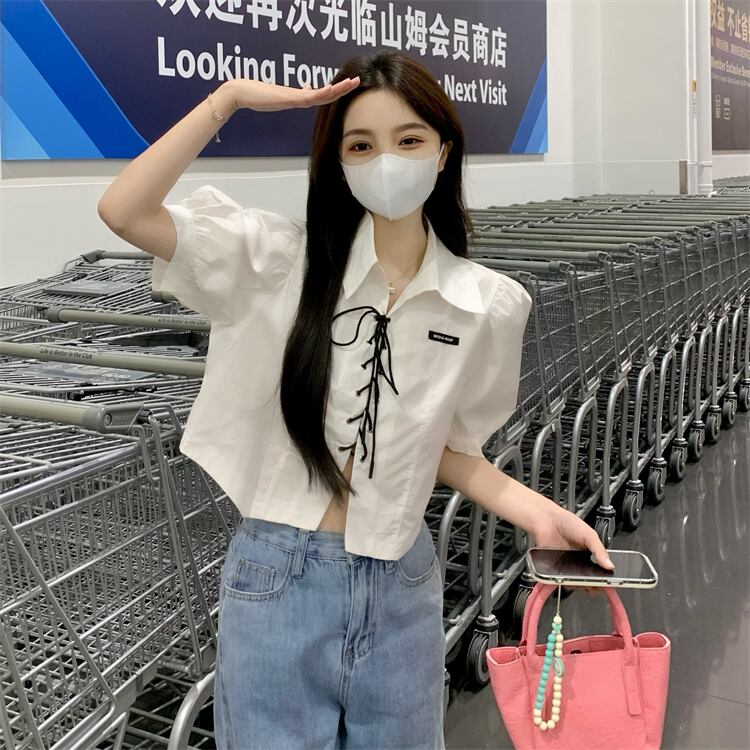 ショートホワイトシャツ トップス サマーカラー レース 夏物 レースアップ s576196110712781