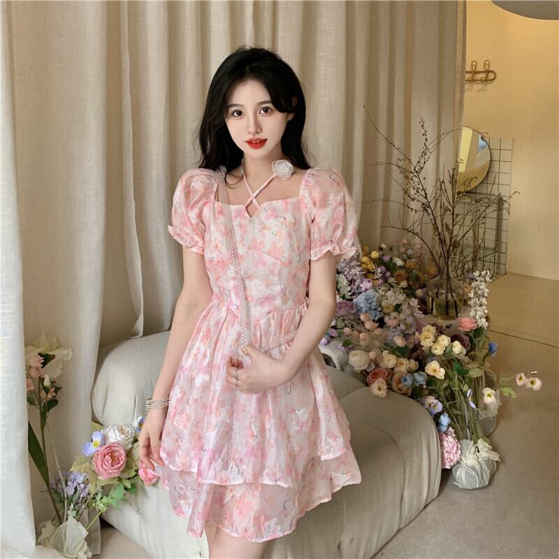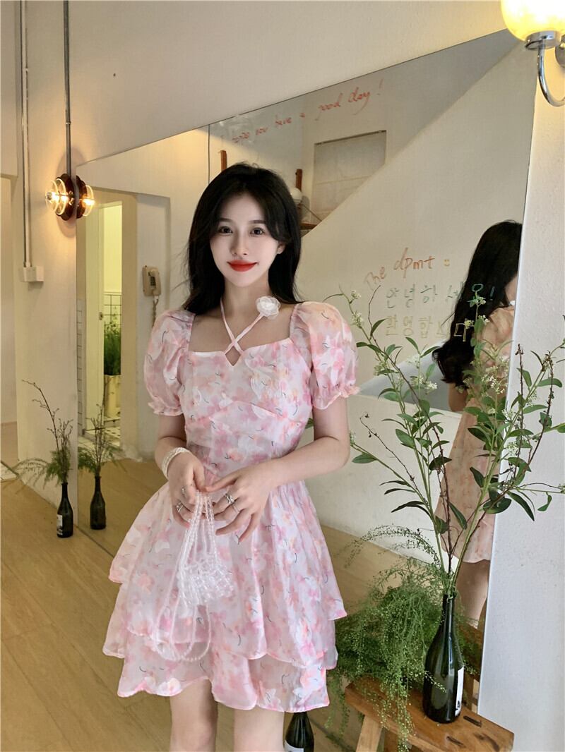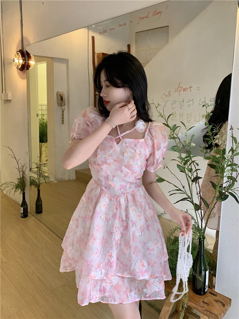 スリーブフローラルドレス サマーショートスカート 夏物 花柄 s576148445139237