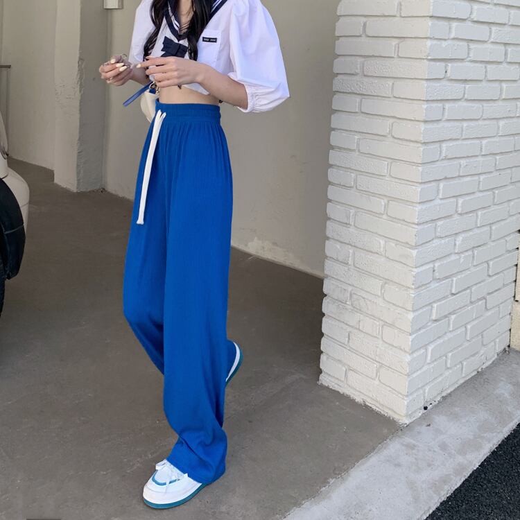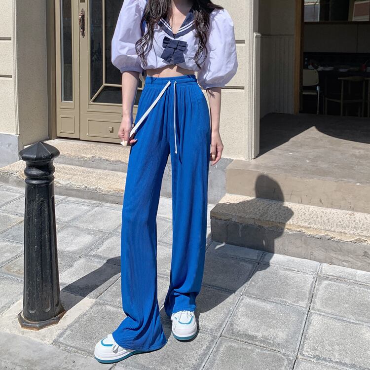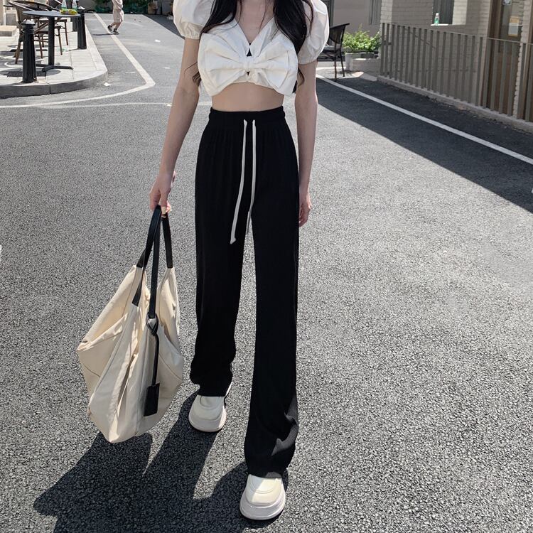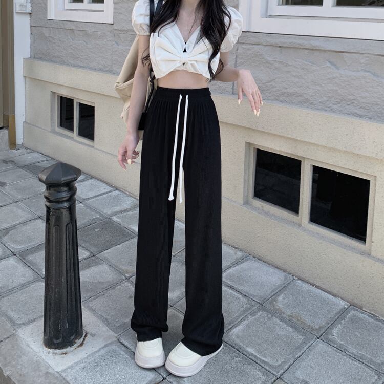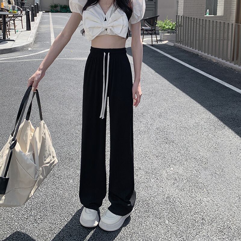 ブラックパンツ サマー薄手ハイウェストルーズカジュアル 夏物 s57619975861837