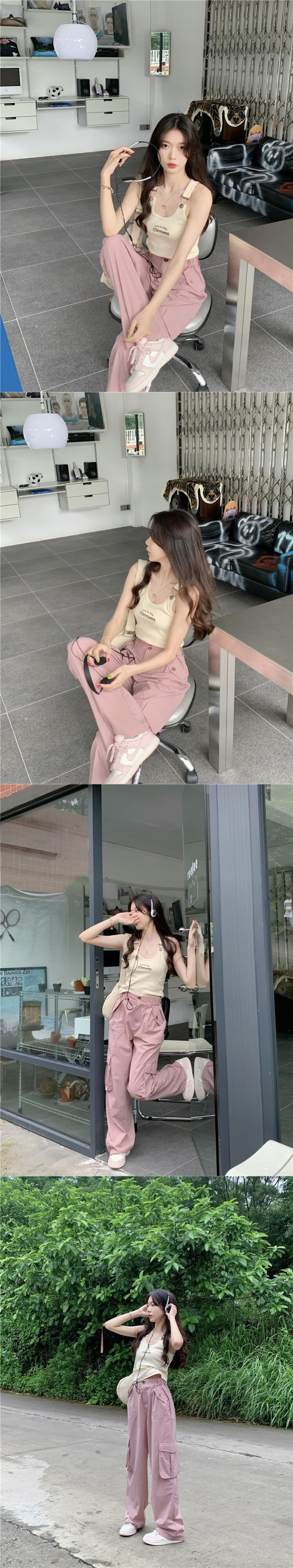 色:ダークグレーsling,アプリコットsling,ブラックhaltervest,アプリコットパンツ,ピンクパンツ,アーミーグリーンパンツ