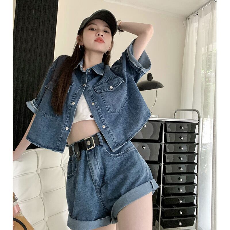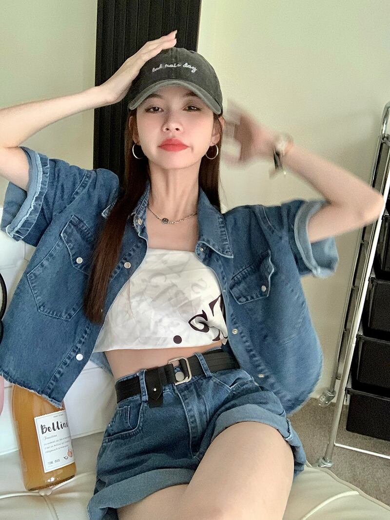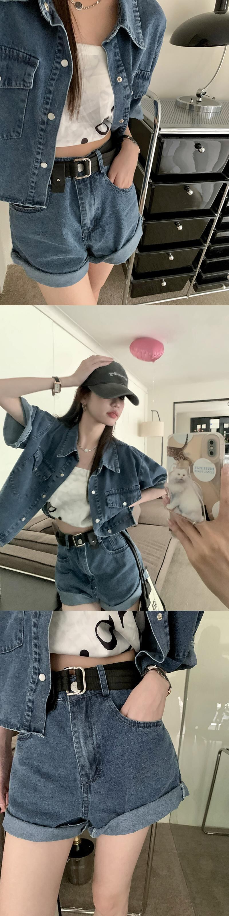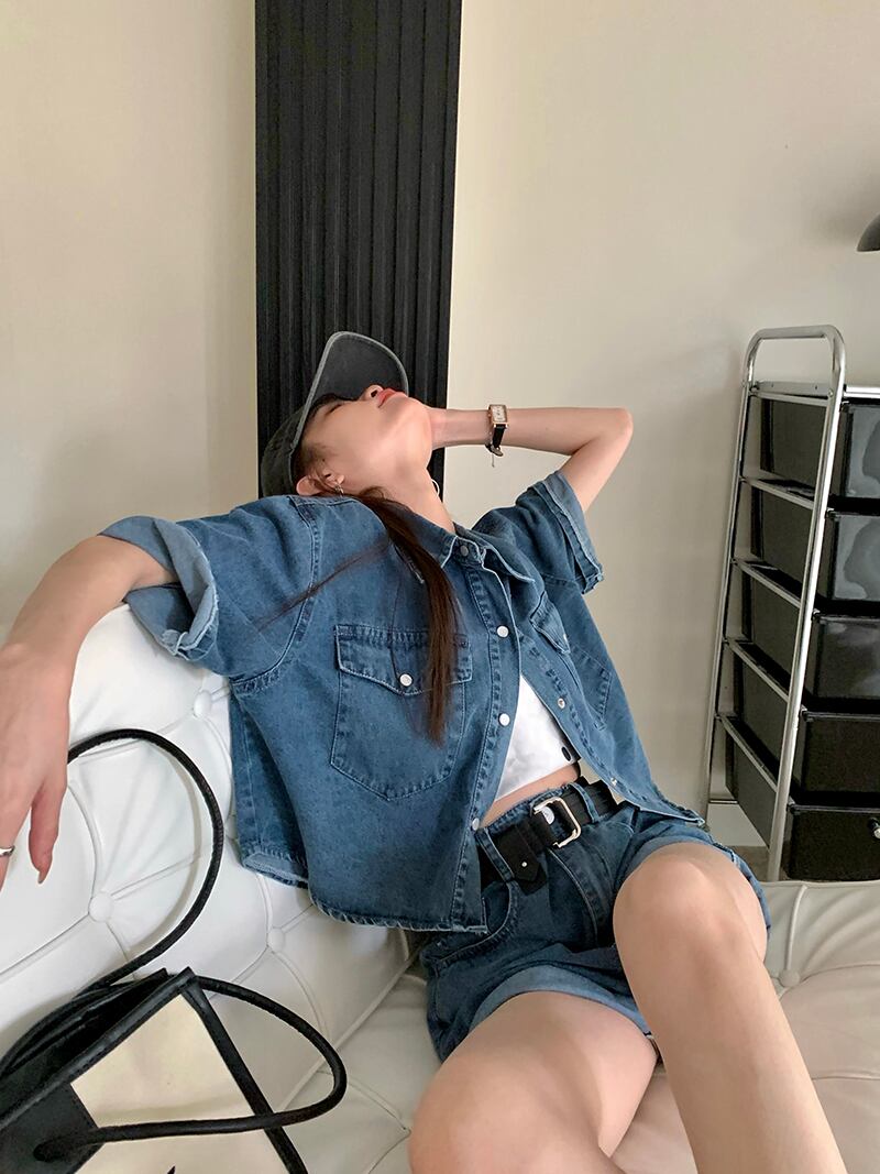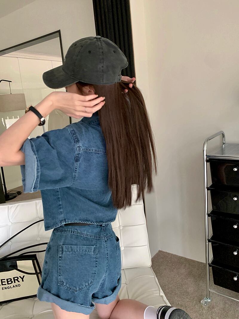 色:デニムcropトップ,デニムshorts