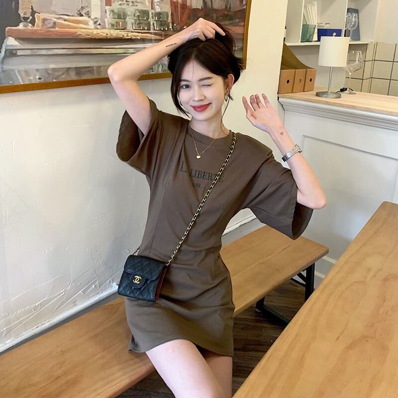 Tシャツ ドレス サマースタンダードスリムショートスカート レトロ 夏物 s576115517129419