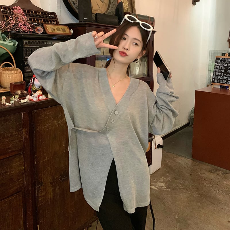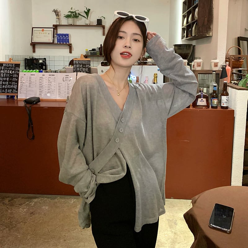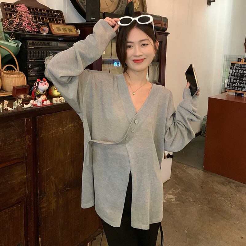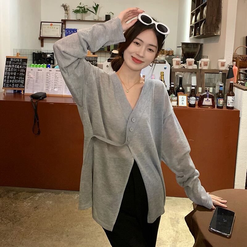 グレーニットカーディガンサマー薄手スタイルルーズカジュアルトップス ロング 夏物 s576124275084335