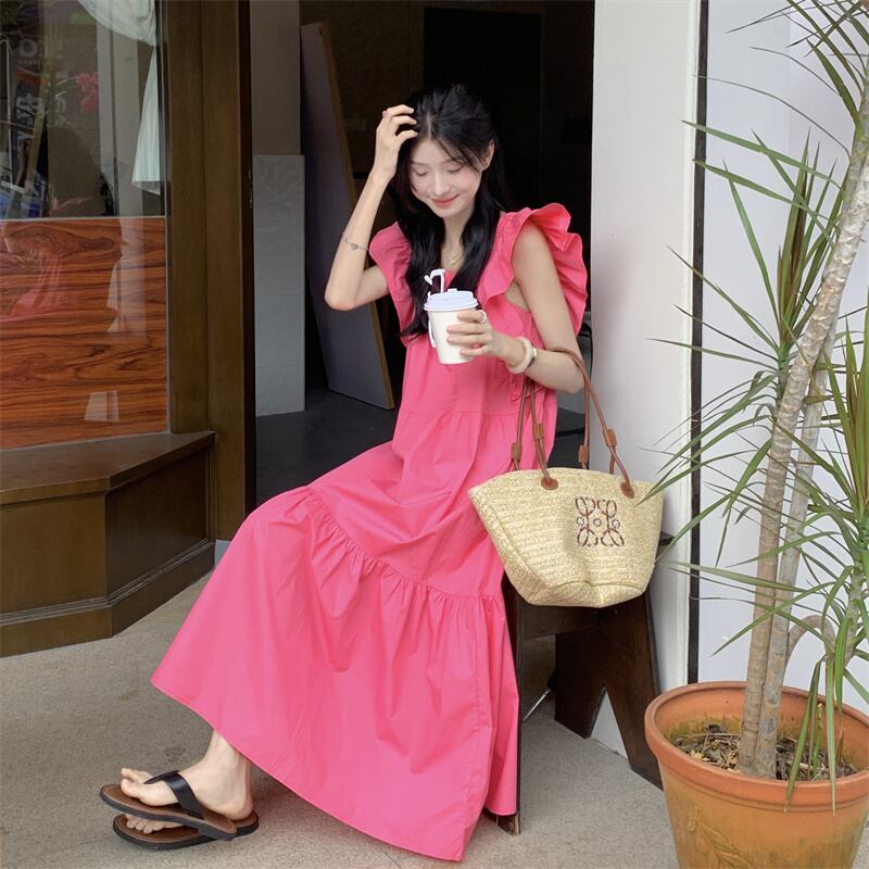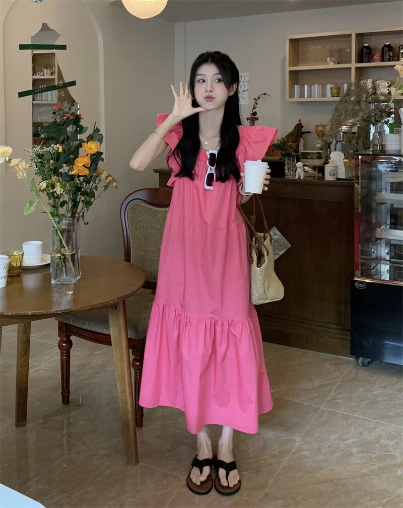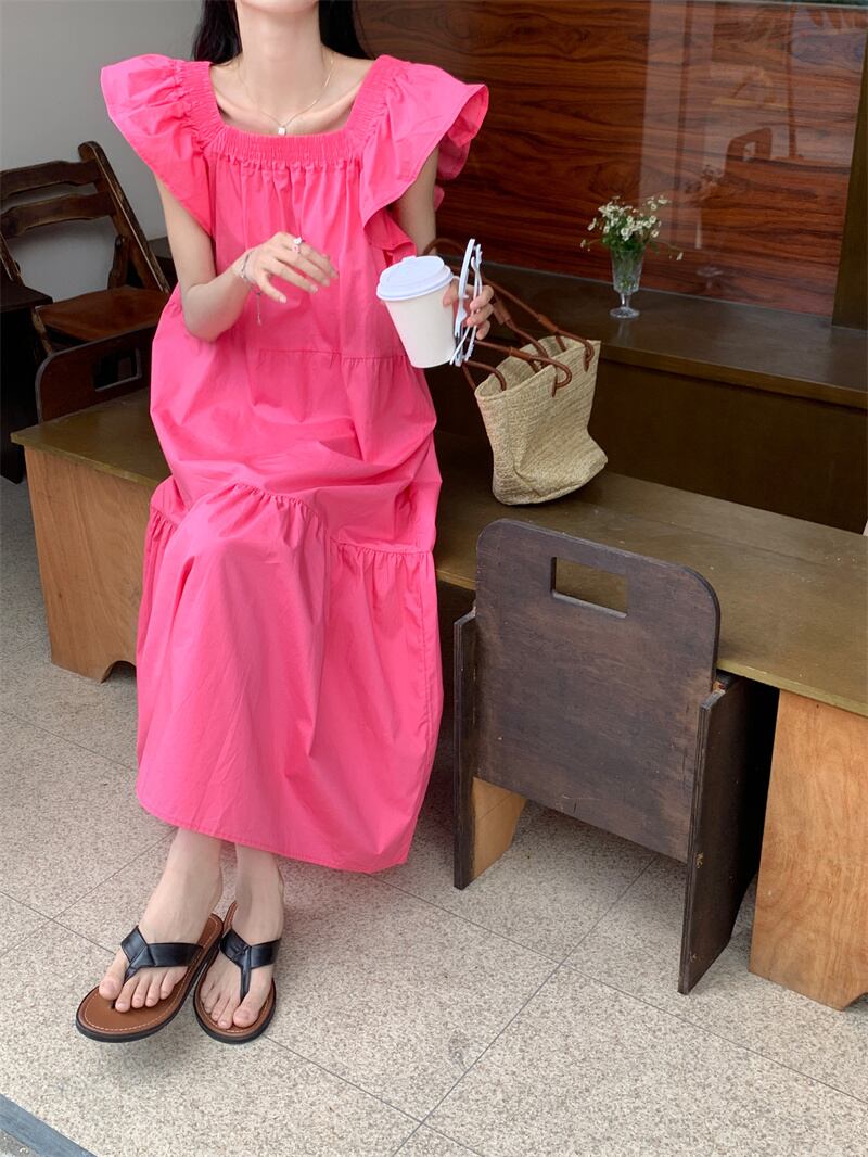 サイドスリーブロングスカート サマースタイルカラースリムドレス 夏物 スクウェア s576194803954768