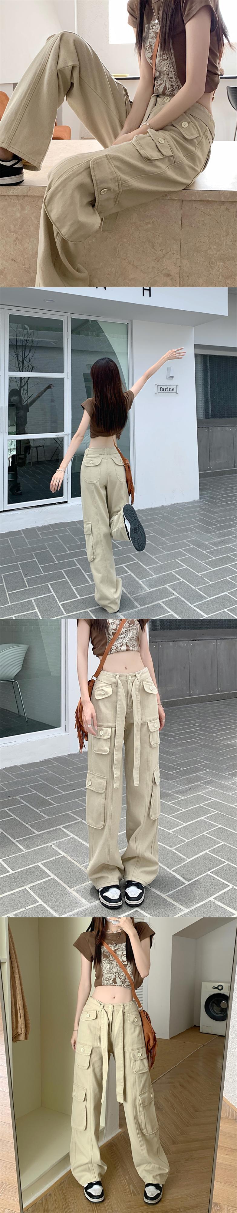 オーバーオール サマー薄手ハイウェストウェストルーズワイドレッグパンツ 夏物 ワイドパンツ s576163618097865