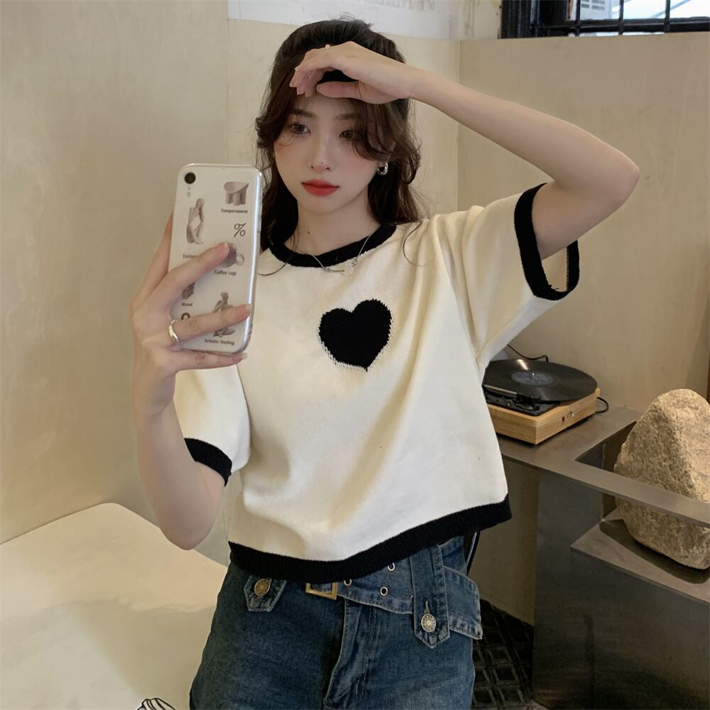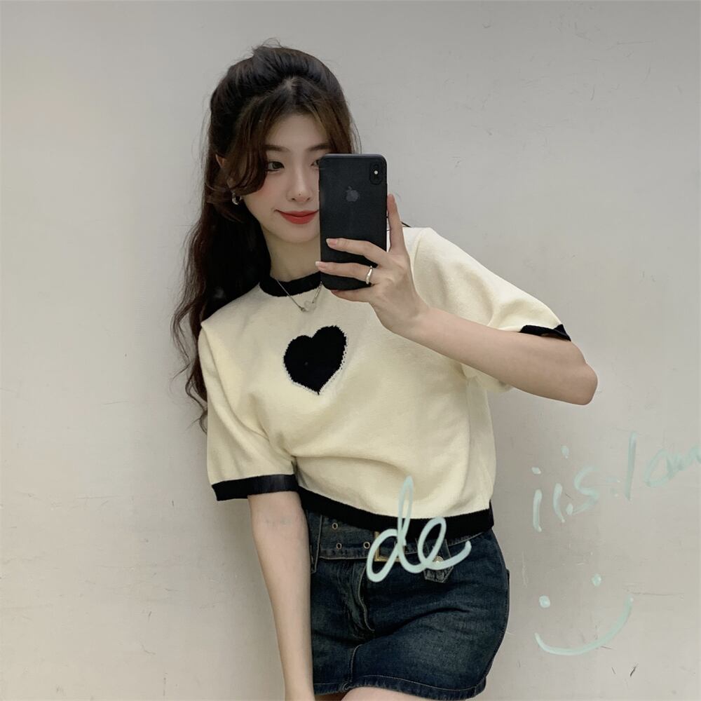 カラーTシャツ サマーショートルーズニットトップス 大人ガーリー スウィート キュート カジュアル 夏物 s576154537716492