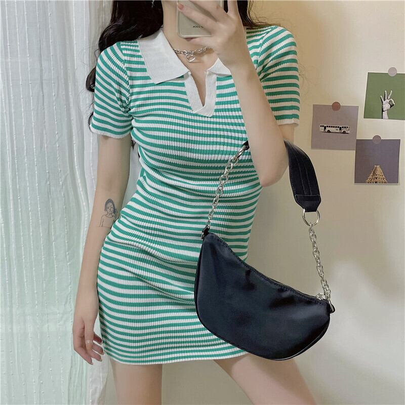 カラーストライプニットドレス スプリングスリムショートスカート 春物 s576117376600419