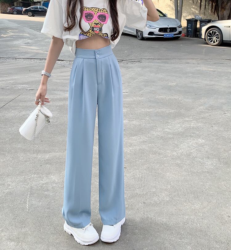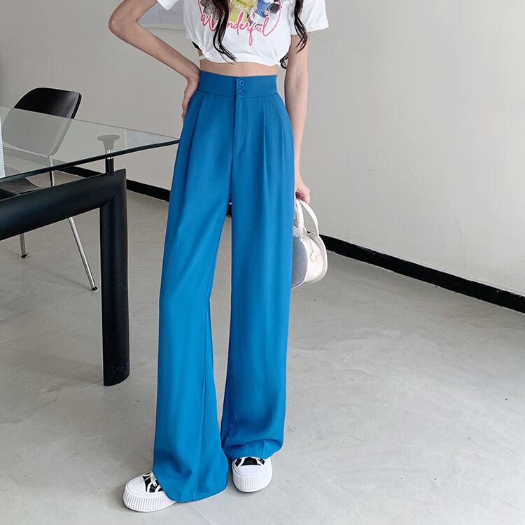 ダークブルーパンツ サマーハイウェストウェストルーズワイドレッグ 夏物 ワイドパンツ s576178263563095