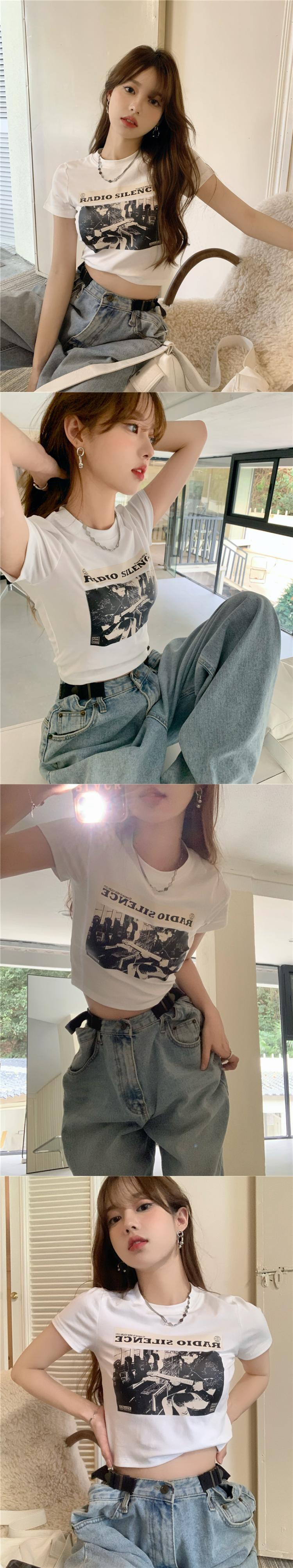 スタンダードTシャツ サマースタイルプリント柄スリムトップス レトロ 夏物 s576152350719145