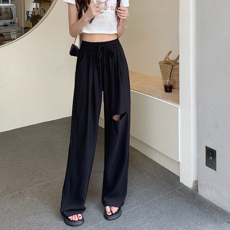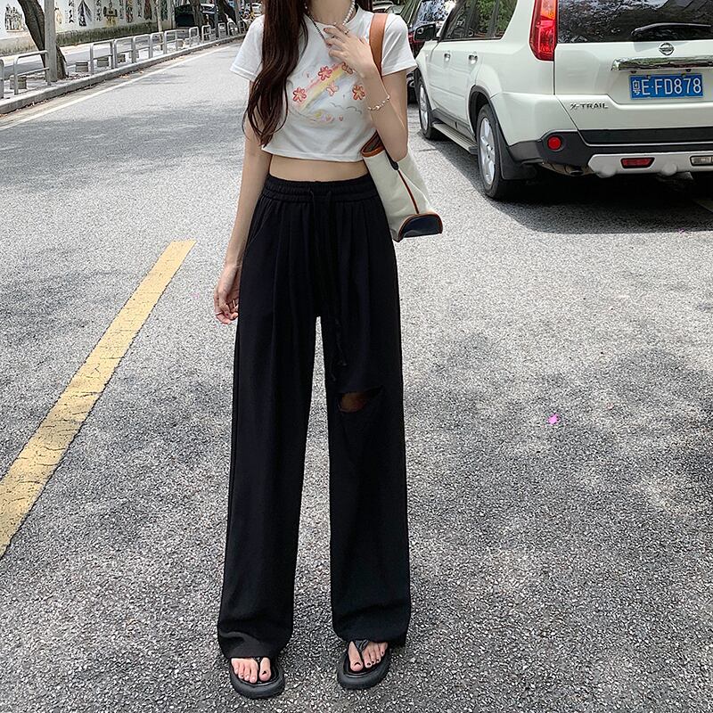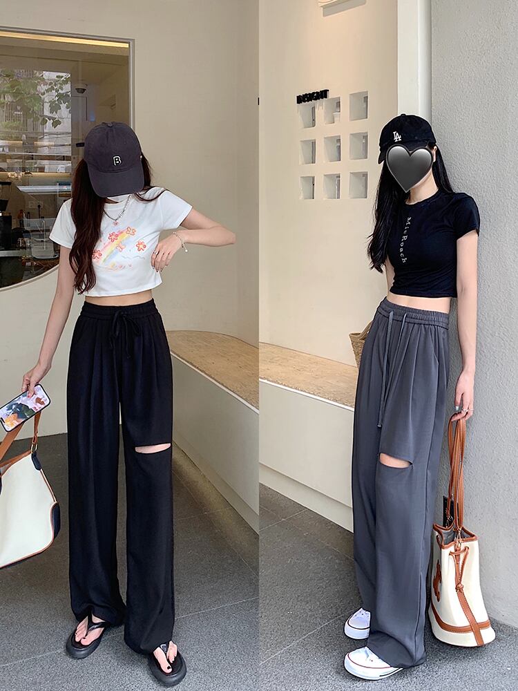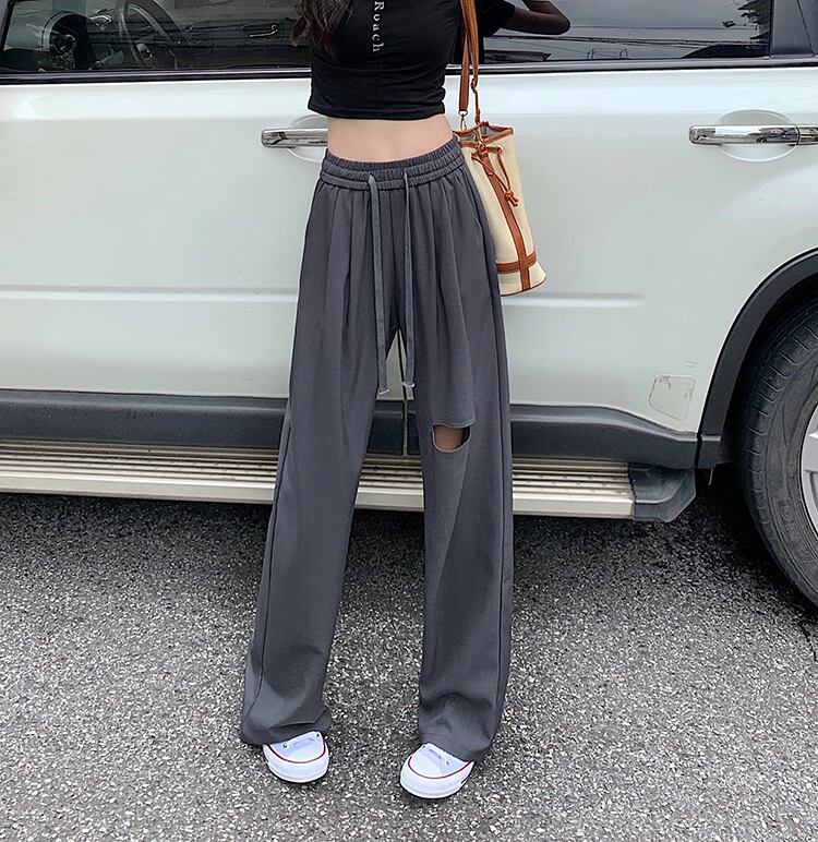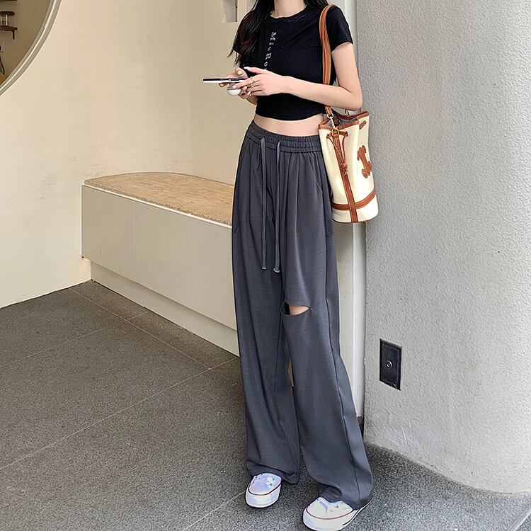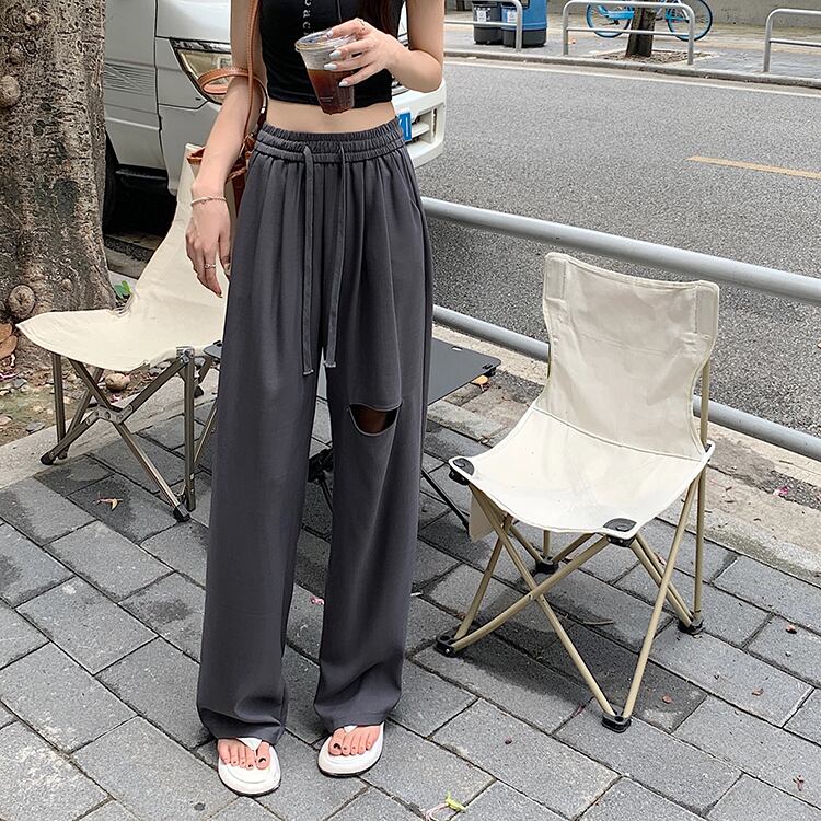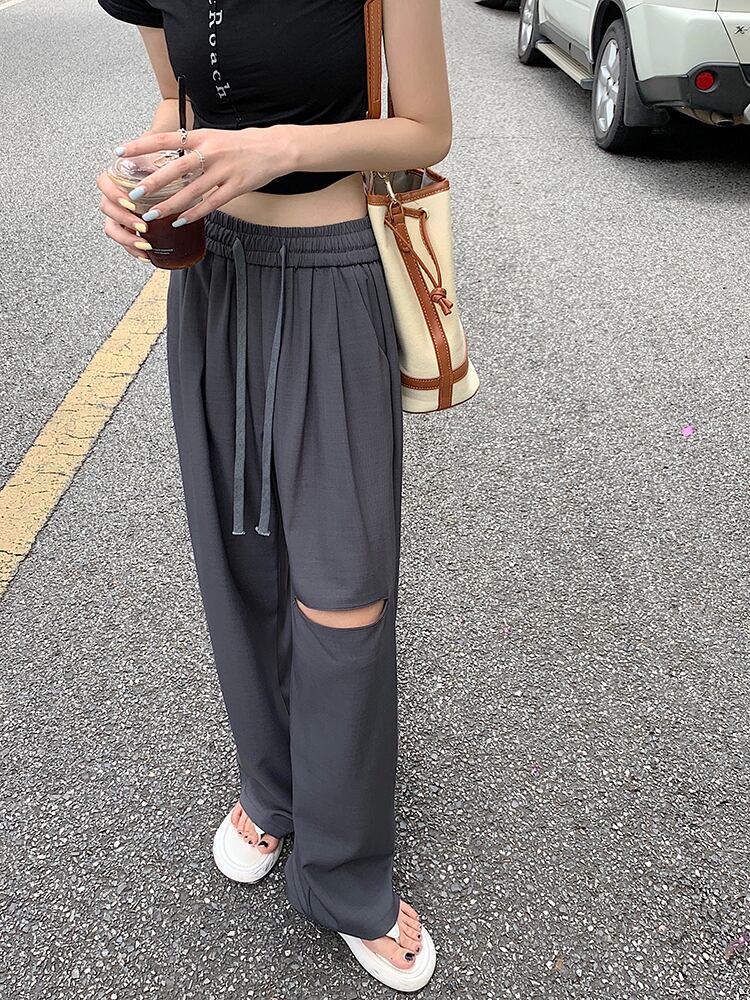 パンツ サマー薄手グレーハイウェストウェストカジュアル 夏物 s576193718741561