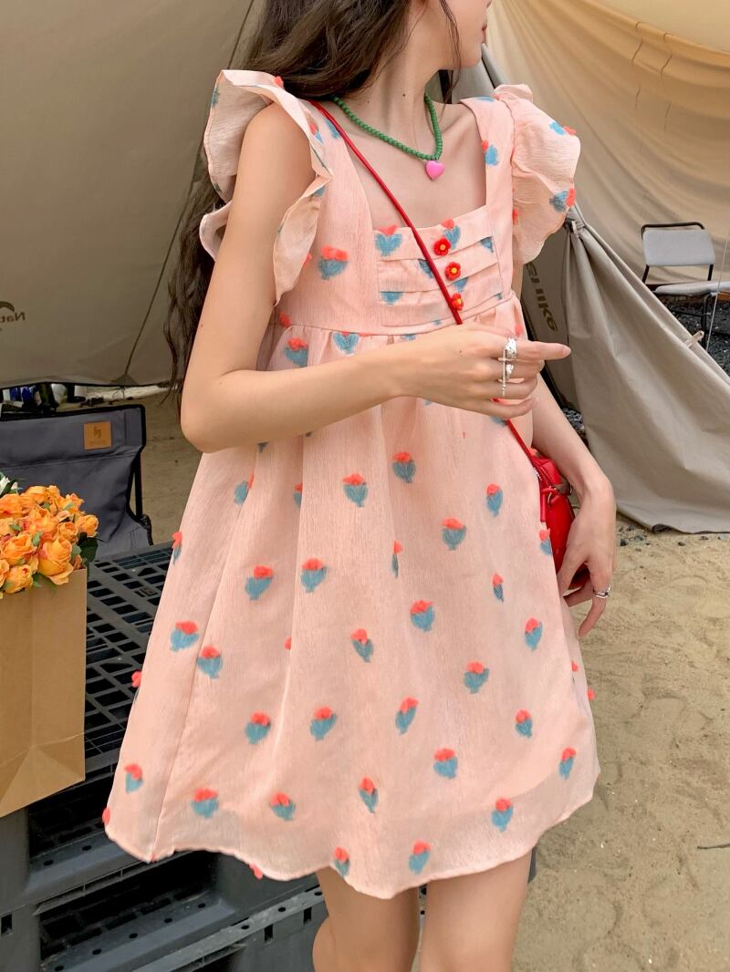 フローラルドレス サマースタイルスカート 大人ガーリー スウィート キュート カジュアル 夏物 花柄 スクウェア s576159807608509