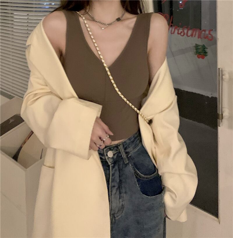 ベーシックサマースリムVネックショートトップス 夏物 s576110944834002