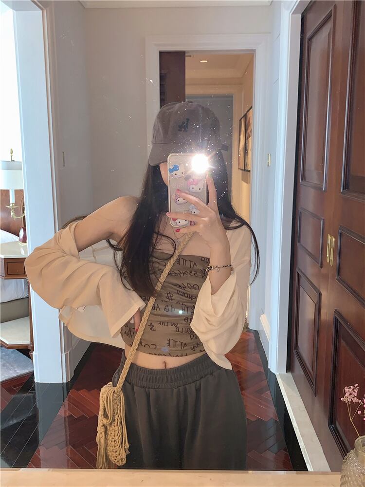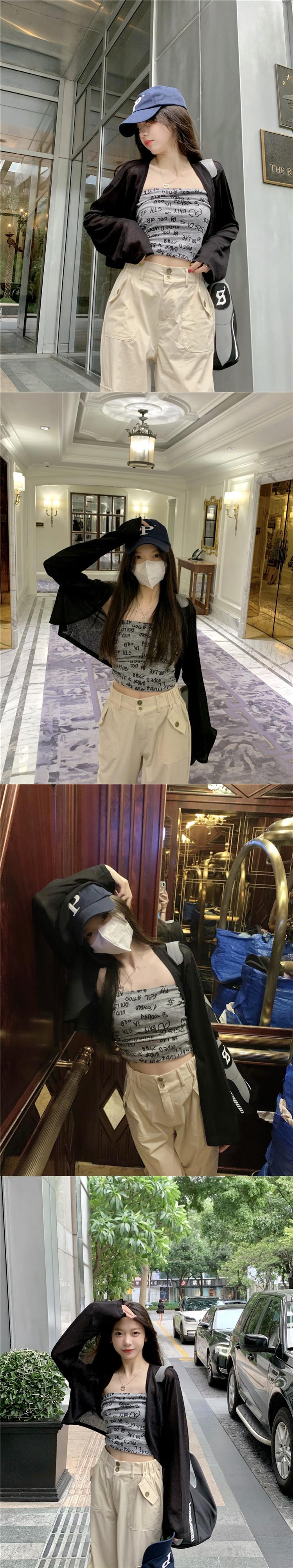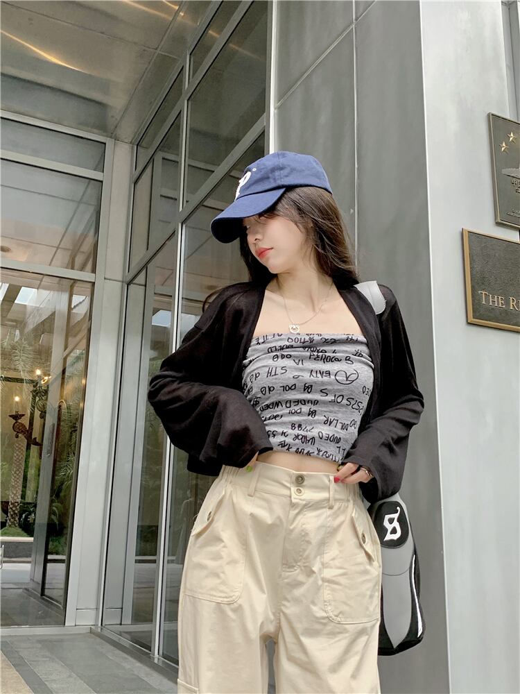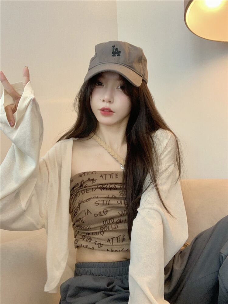 色:ベージュcardigan,ブラックcardigan,モカ色tubeトップ,グレーtubeトップ
