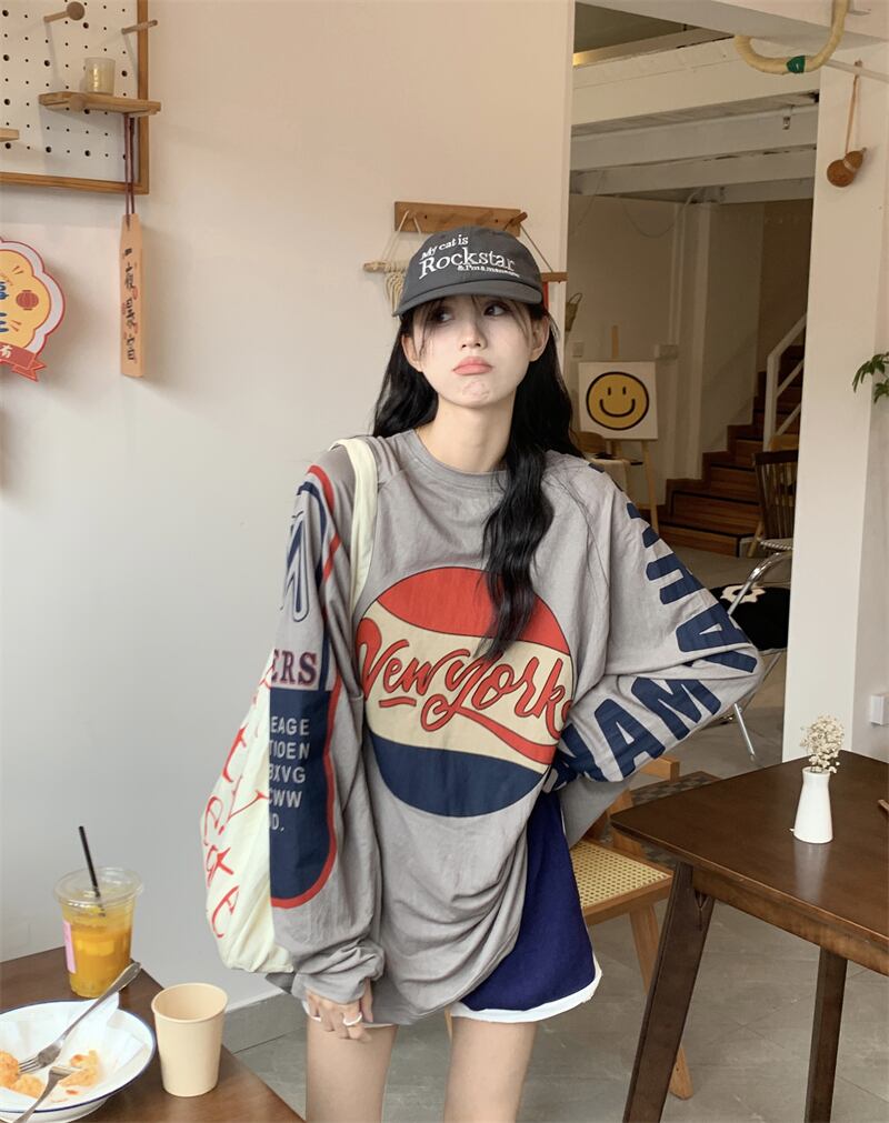 Tシャツ サマー薄手スタンダードトップス ロング レトロ 夏物 s576144023246059