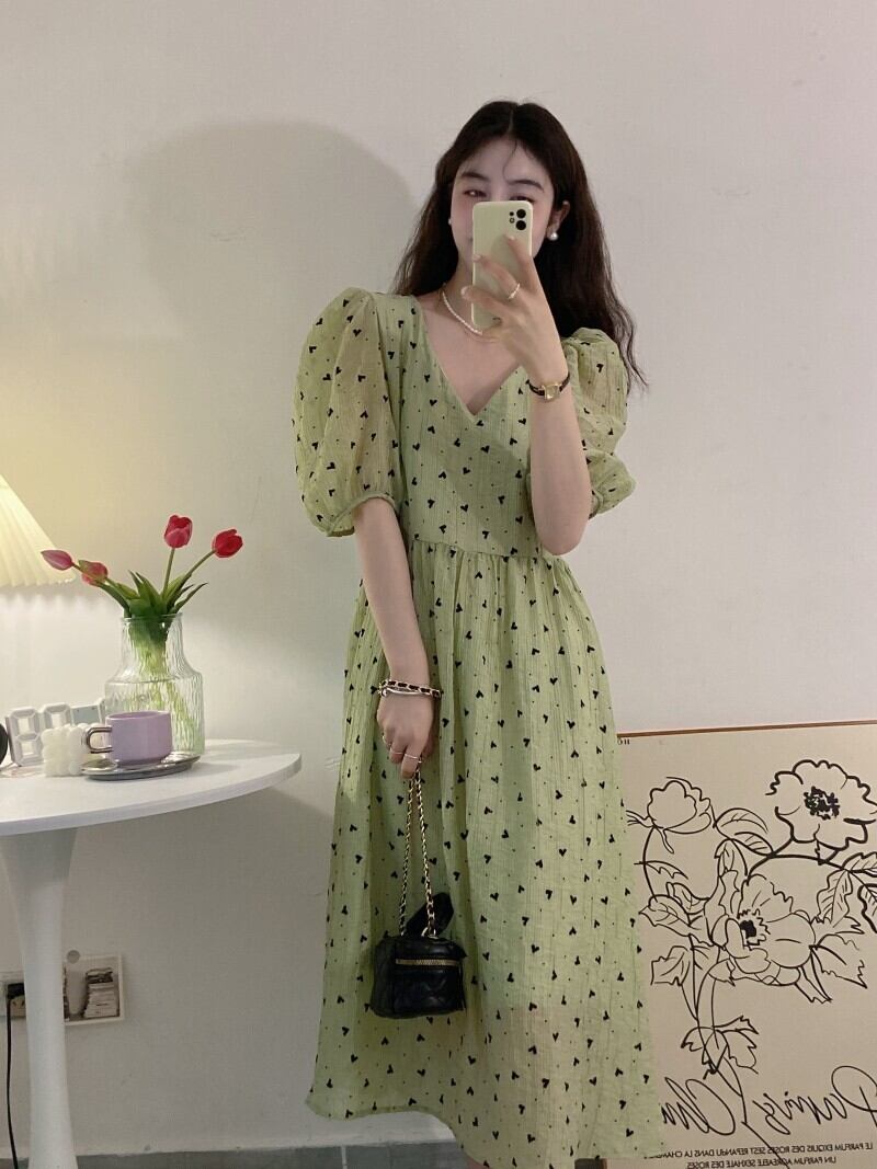 スリーブVネックドレス サマーウェストロングスカート 夏物 s576163198473971