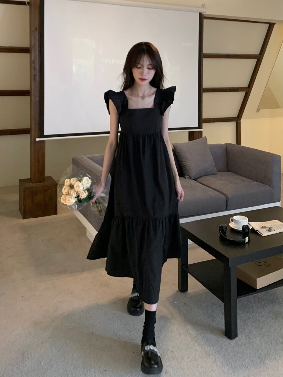 ドレス サマースタイルブラックロングスカート 夏物 スクウェア s576161573707839