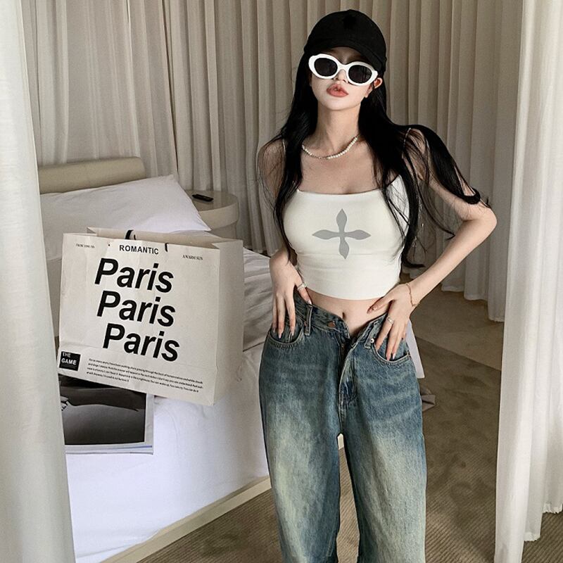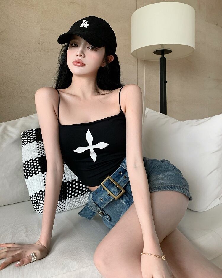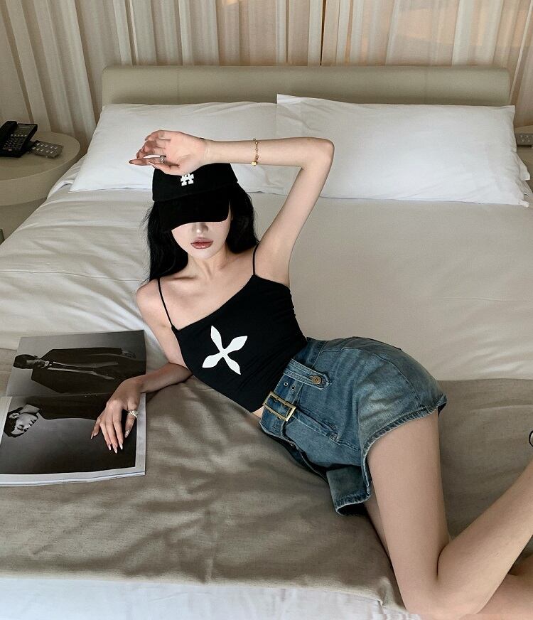 ブラックレディースサマースリムトップス ショート 夏物 ピュア s57611383495291