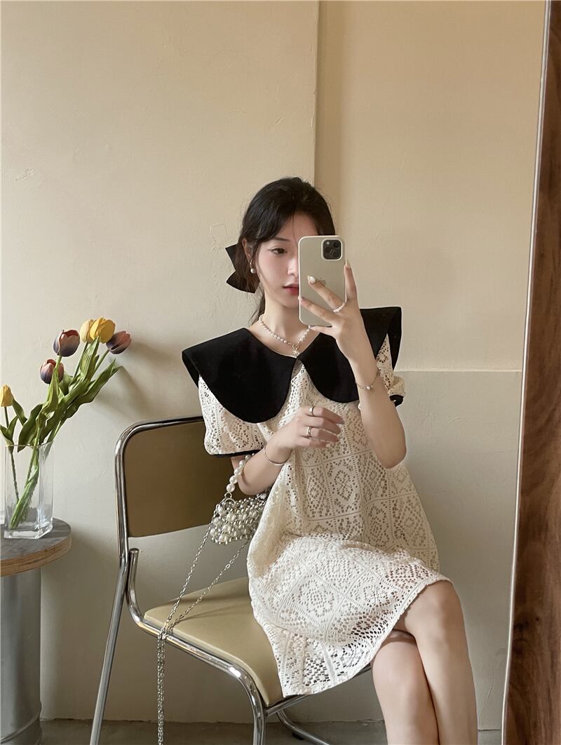 スリーブレースドレス サマーカラースカート 夏物 s576166754062806