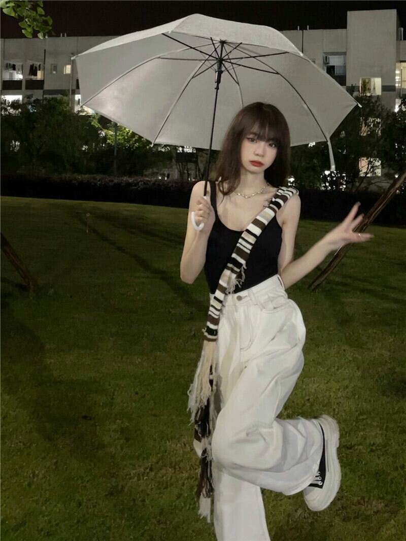 ホワイトジーンズ サマーハイウェストパンツ ストリート 夏物 s576167652199246