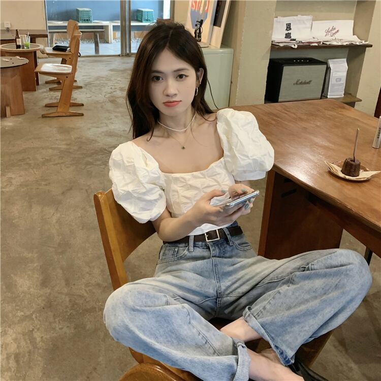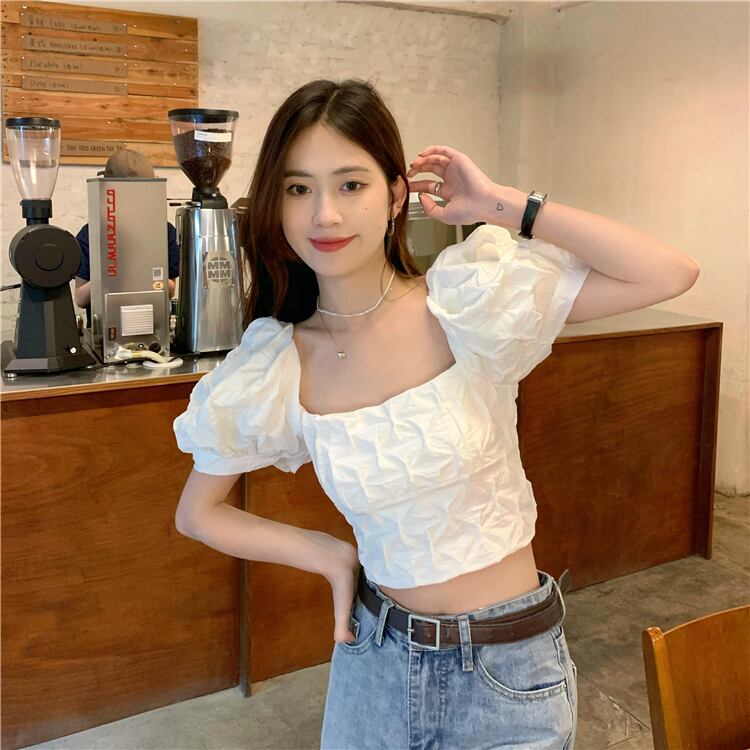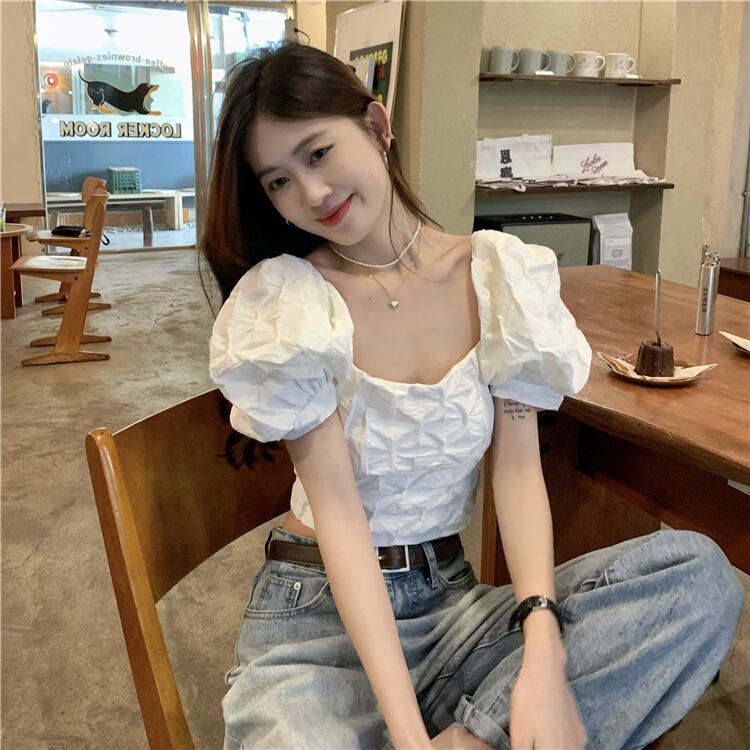 カラーショートトップス サマーホワイトスリーブシャツ 夏物 スクウェア s576169854159901