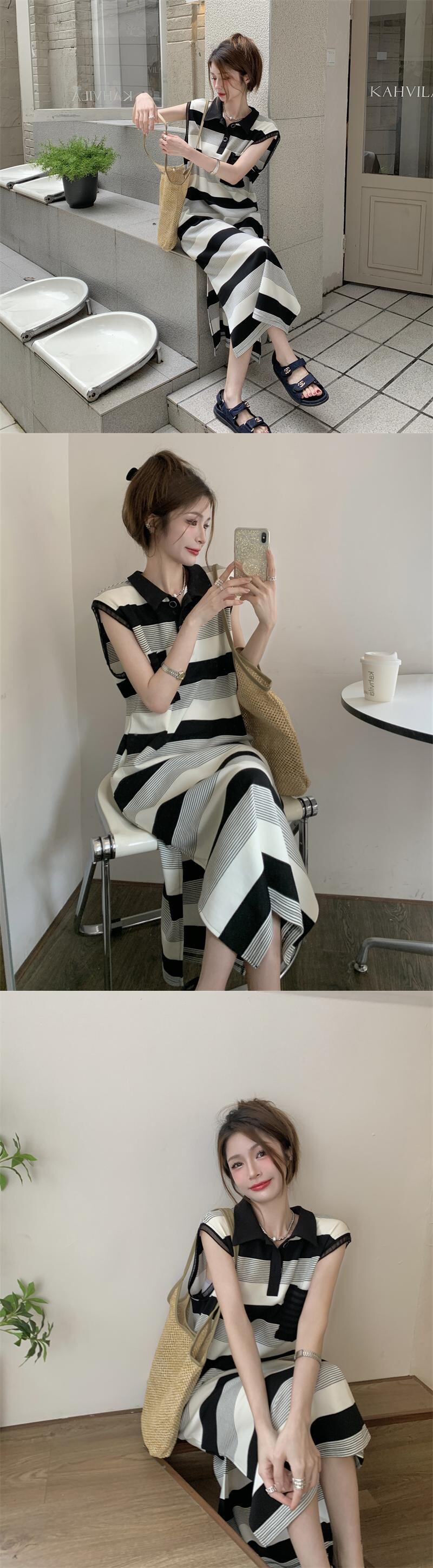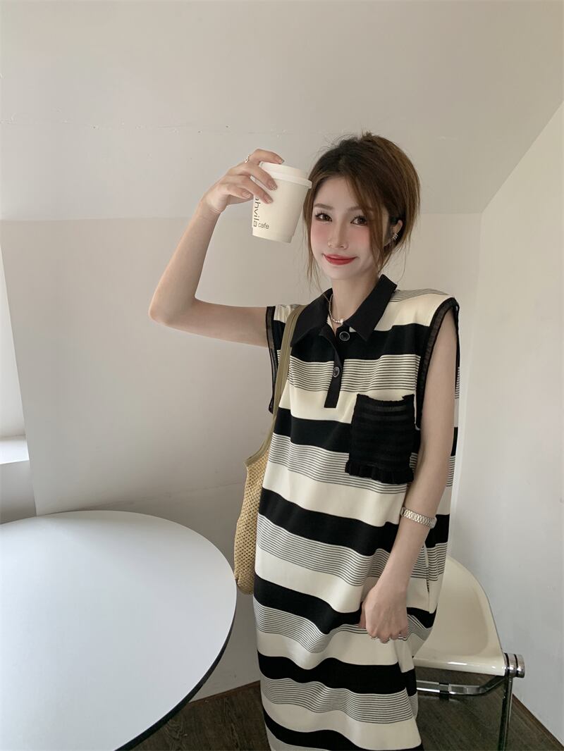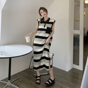 カラーノースリーブドレス サマースタンダードルーズカジュアルスカート レトロ 夏物 s576174840424046
