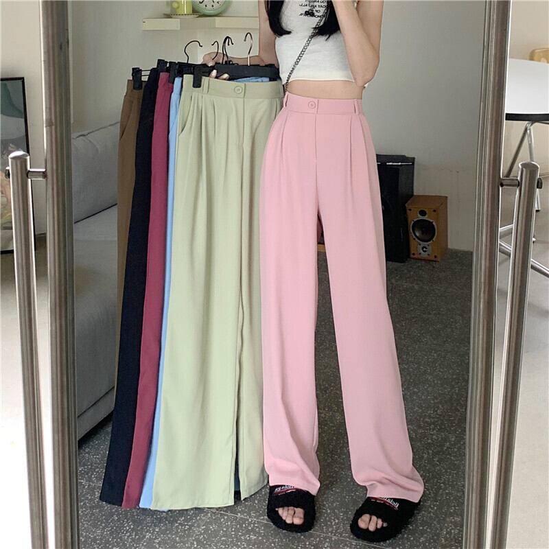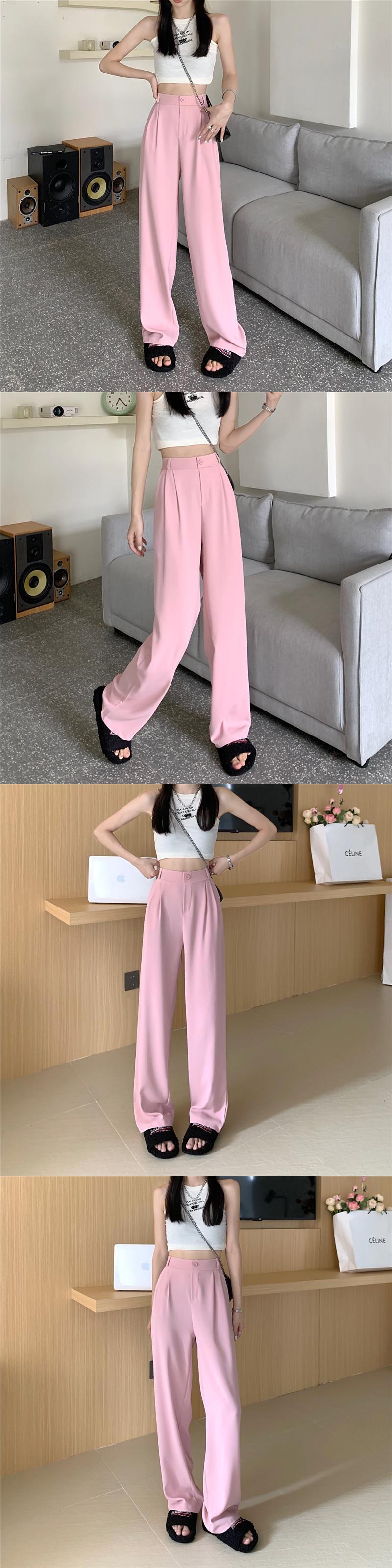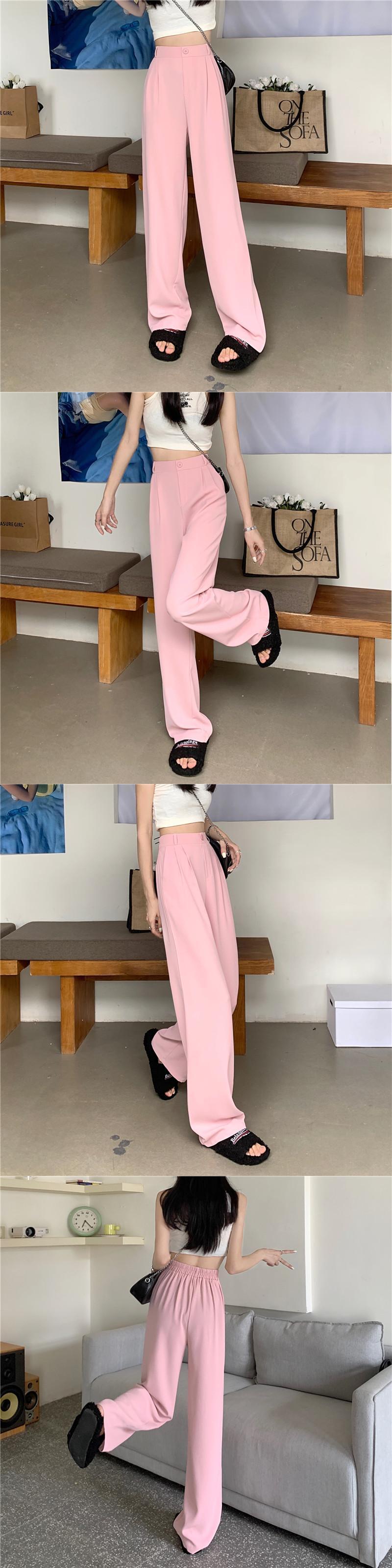 パンツ サマー薄手ハイウェストウェストワイドレッグルーズ ピンク 夏物 ワイドパンツ s576196174082646