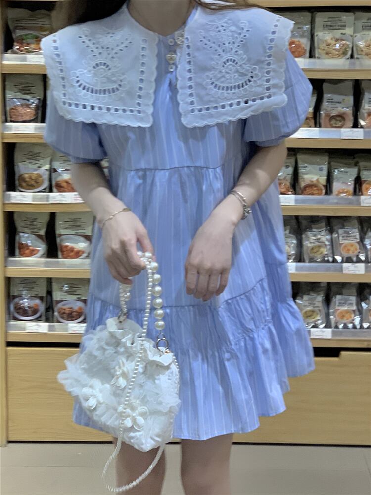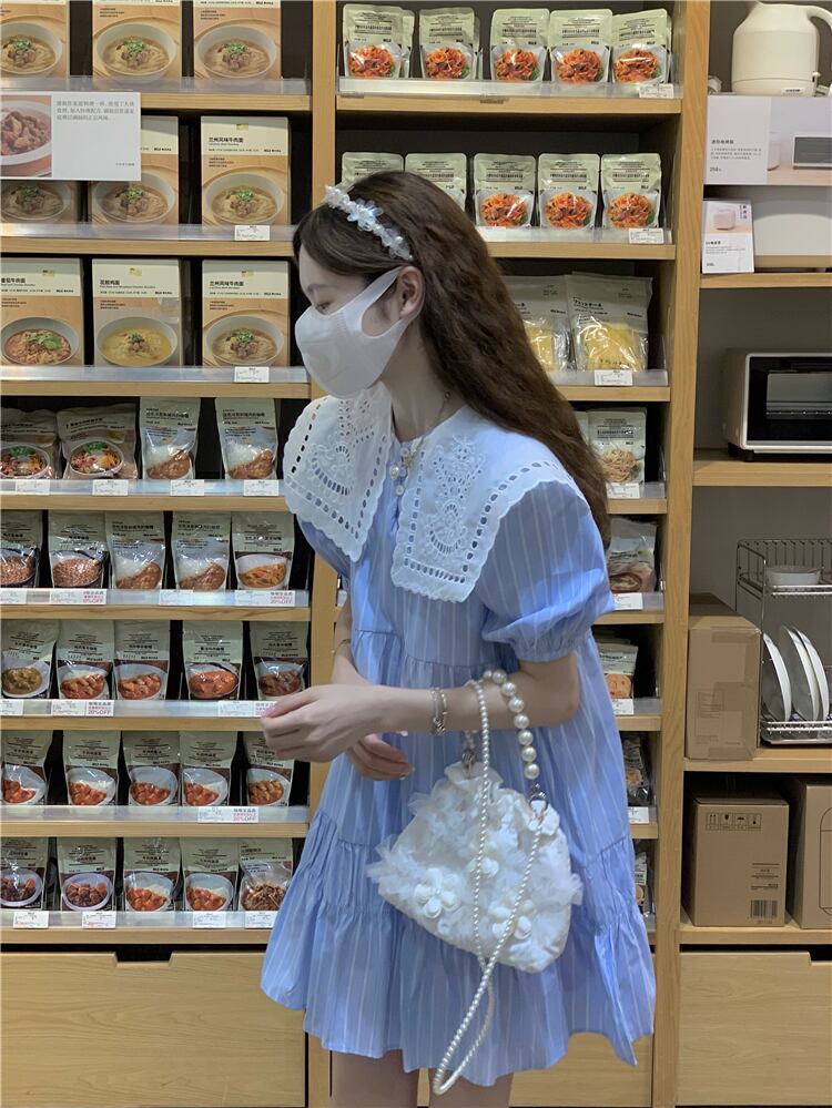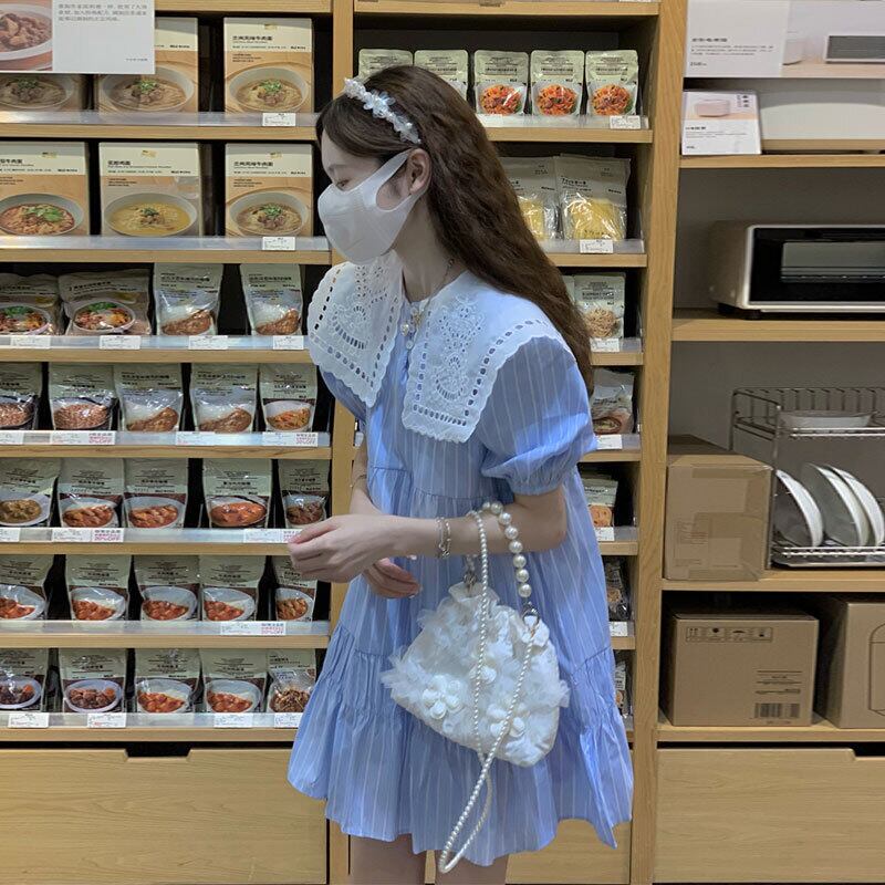 ストライプドレス サマースリーブスカート 大人ガーリー スウィート キュート カジュアル 夏物 s576151010091489