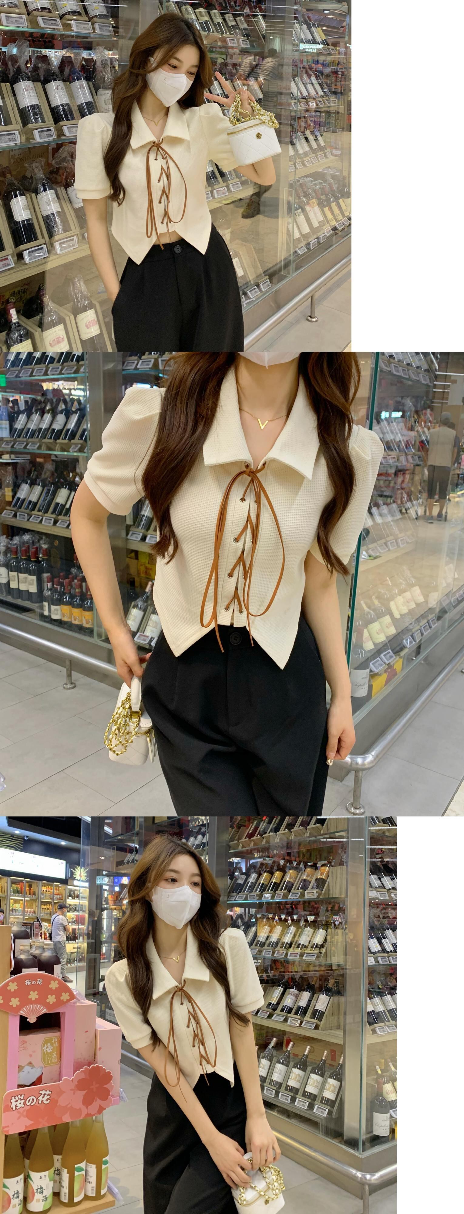 ショートトップス サマースタイルスリーブシャツ 大人ガーリー スウィート キュート カジュアル 夏物 s576134457662576