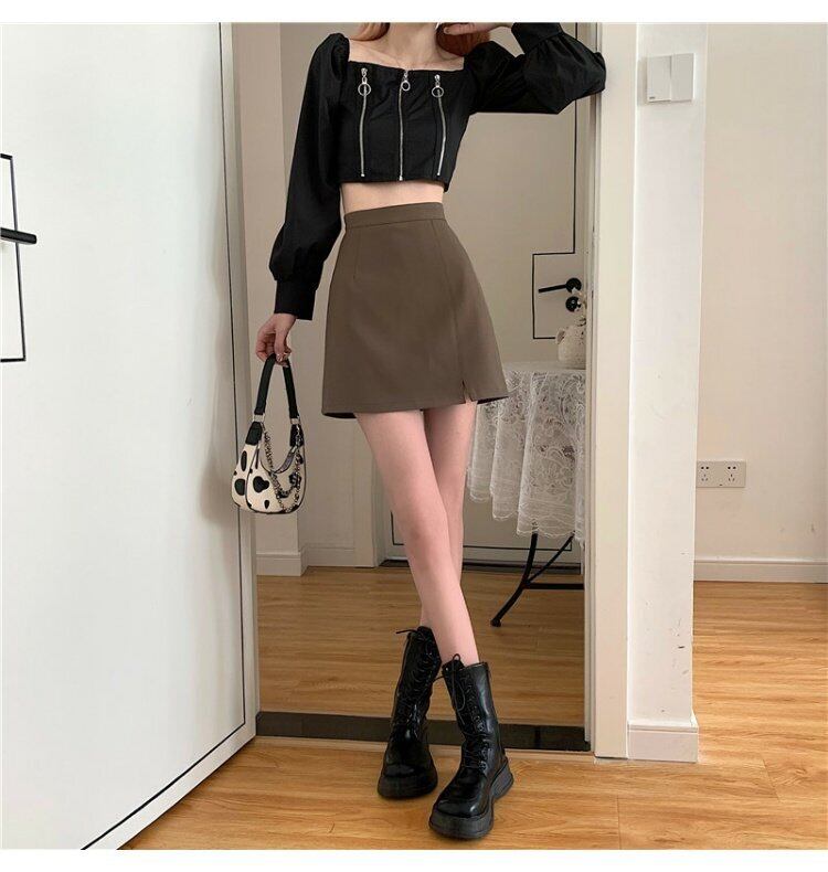 カラースカート スプリングオータムハイウェストAラインスタイル薄手ショート 春物 秋物 s57616654338527