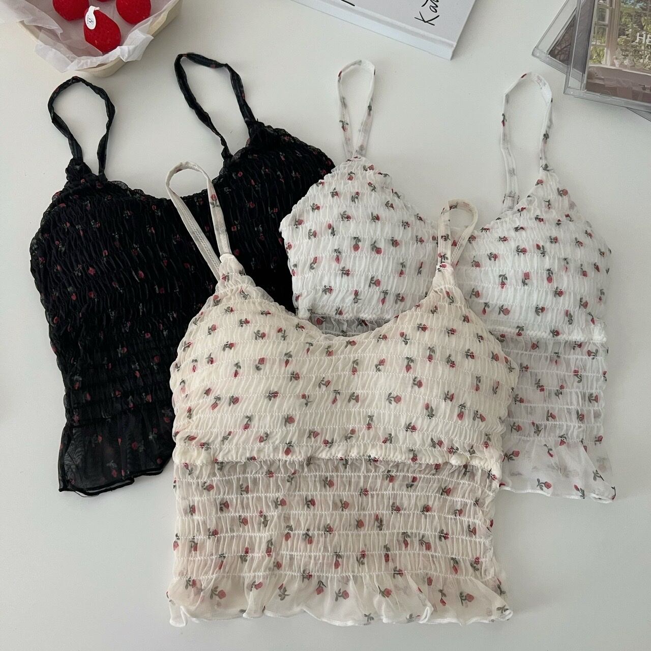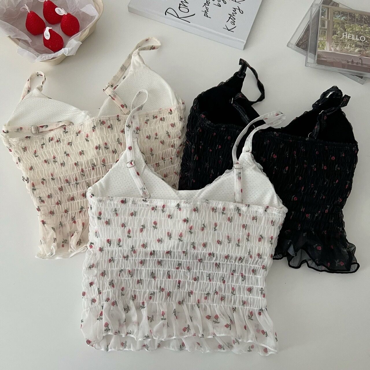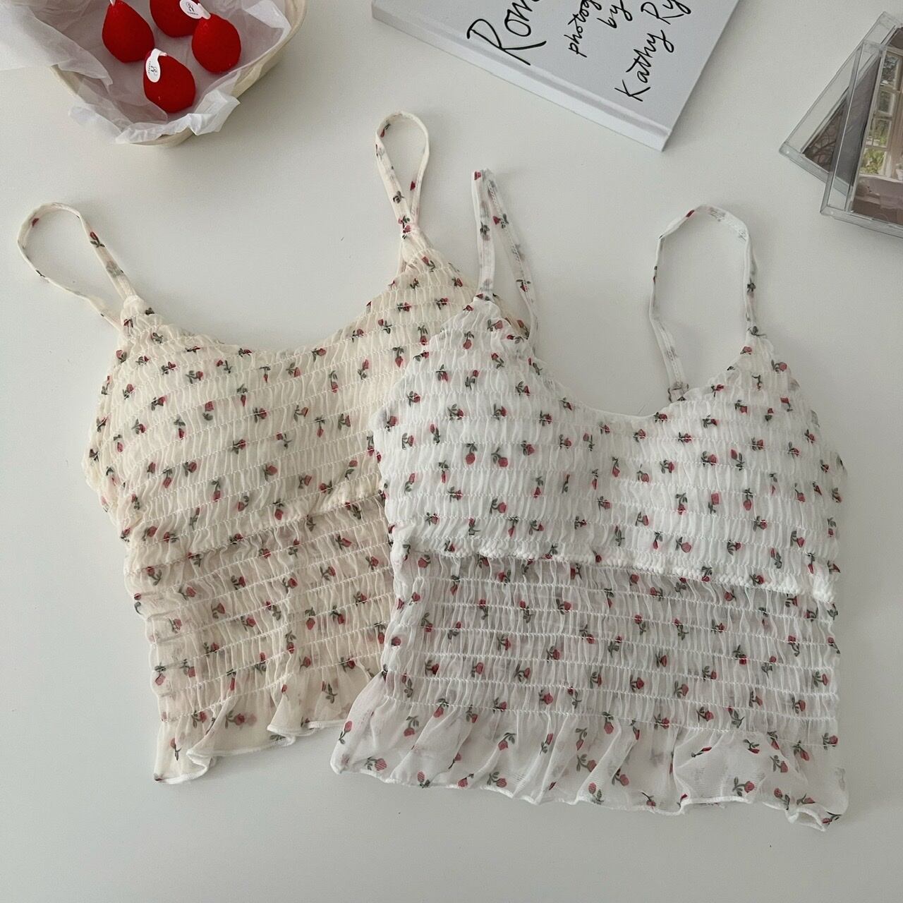 フローラルノースリーブショートトップス 大人ガーリー スウィート キュート カジュアル 花柄 s576185856528691