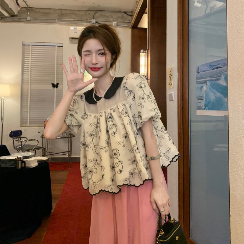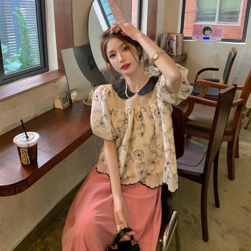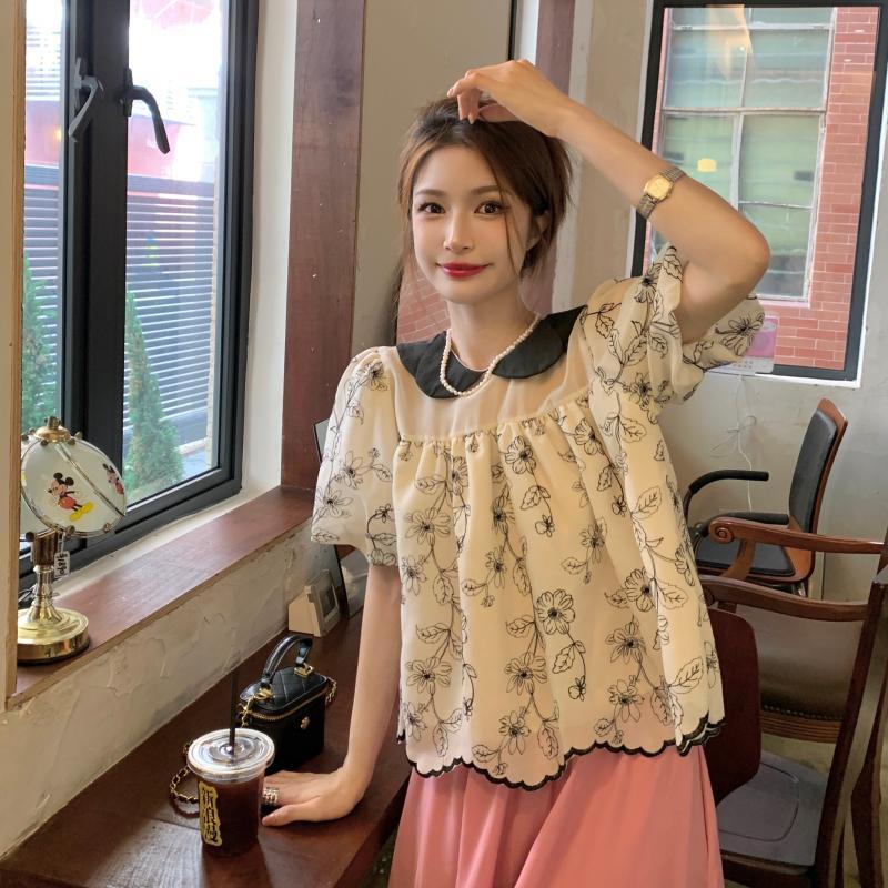 スタンダードスリーブトップス サマースタイルフローラルシャツ レトロ 夏物 花柄 s576113873666696
